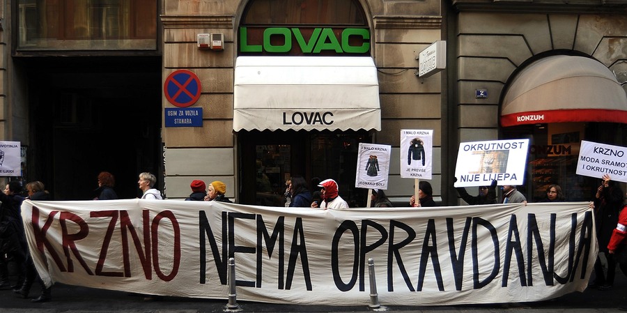 Svake godine više od 75 milijuna pasa, mačaka, činčila, tuljana, lisica, kunića i drugih životinja ubija se za proizvodnju krznenih kaputa i krznenih dodataka zbog zahtjeva modne industrije. Ubijanje je potpuno nepotrebno, a životinje doživljavaju strahovitu bol i patnju. Životinje zatočene na farmama pate od rođenja u malim, prljavim kavezima sve do smrti uzrokovane strujnim udarom, lomljenjem vratova ili gušenjem plinom, dok one ulovljene u divljini danima umiru uhvaćene u zamke. Osim što se dobiva ubijanjem životinja, krzno nije niti ekološko jer se za njegovu obradu nemilosrdno troše prirodni resursi, pitka voda i opasne kemikalije.