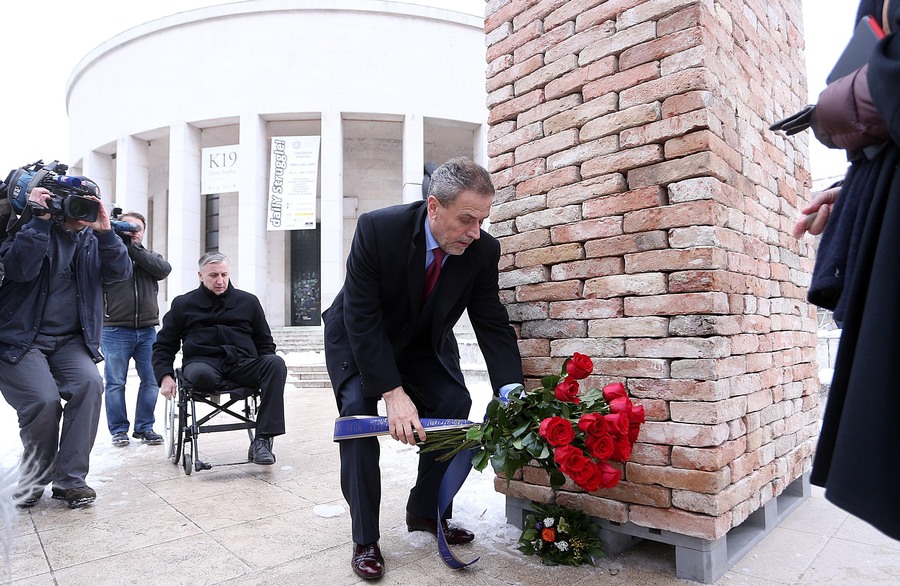 Cvijeće i kamenčiće pred Džamijom je jutros položio i gradonačelnik Milan Bandić, s direktoricom Spomen-područja Jasenovac Natašom Jovičić i Lucianom Mošeom Prelevićem, glavnim rabinom Židovske općine Zagreb. Obišli su i instalaciju K19, autora Zlatka Kopljara, sastavljenu od komada cigli koje su izrađivali logoraši u Jasenovcu...
