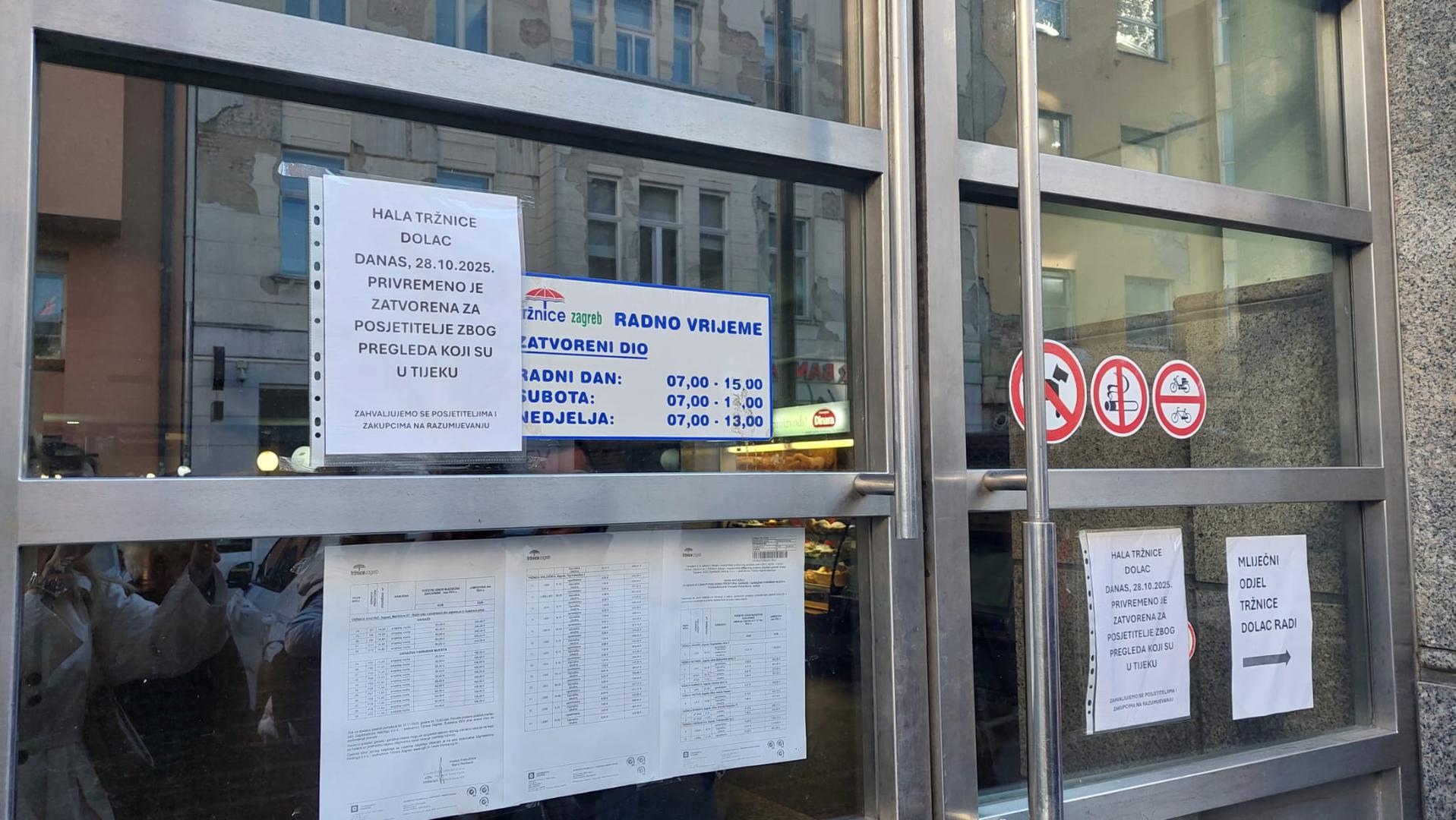 U hali zagrebačke tržnice Dolac srušio se dio stropa. Ispred ulaza stoji red kupaca, no na vratima je znak upozorenja. Prema neslužbenim informacijama, do urušavanja je došlo jutros oko pet ujutro u lijevom dijelu hale, a nikog se ne pušta unutra. Šteta bi, kako kažu radnici, trebala biti sanirana do sutra. I dalje je otvoren mliječni odjel tržnice, a kako javlja reporterka s terena, inspekcija pregledava unutrašnjost prostora. Poslali smo upit Državnom inspektoratu te ćemo objaviti odgovor kad stigne.