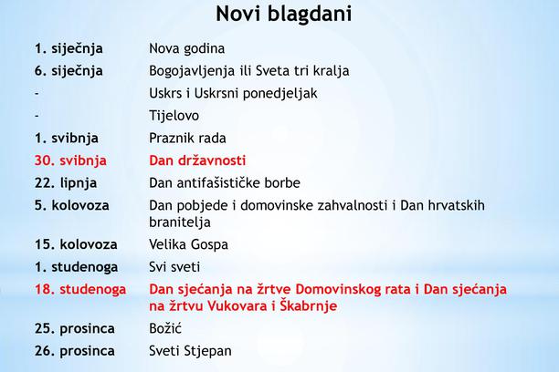 Stoga pozivaju Vladu i Sabor da uz promjenu nacionalnog kalendara blagdana i spomendana omoguće da svaki nacionalni blagdan i nedjelja budu neradni, kako bi to uistinu mogli biti dani za odmor, obitelj i nacionalni ponos.