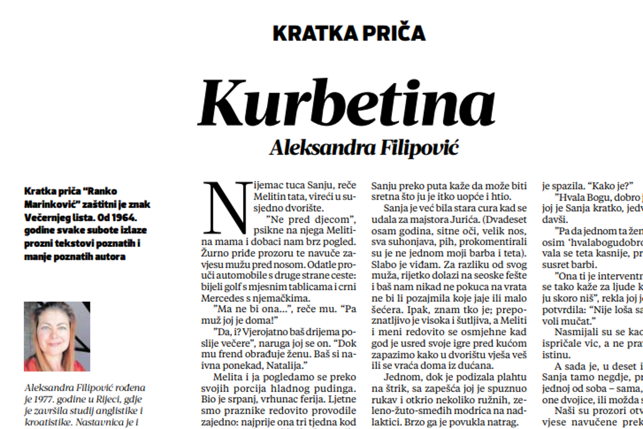Kratka priča “Ranko Marinković” zaštitni je znak Večernjeg lista. Od 1964. godine svake subote izlaze prozni tekstovi poznatih i manje poznatih autora