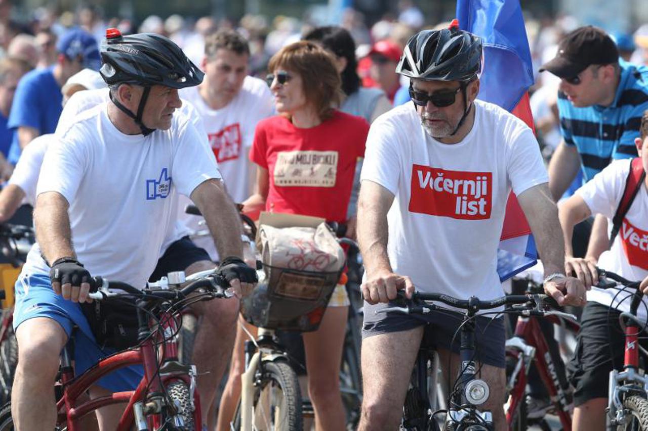 biciklijada Pogledajte kako su biciklisti zauzeli zagrebačke ulice Na čelu povorke vozio se gradonačelnik Milan Bandić koji je na biciklu imao zastavu Hrvatske, kao 28. članice EU