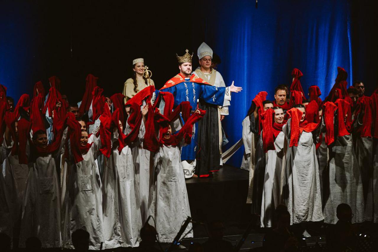 Obljetnički program Mostarska "Krunidba kralja Tomislava" za početak sezone u Splitu Kao solisti nastupaju operni solisti HNK u Zagrebu Roko Radovan, Josipa Bilić i Siniša Štork dok su naratori glumci mostarskog HNK Robert Pehar, Nikolina Marić, Ivo Krešić i Mirela Kordić uz Orkestar HNK Split i Zbor HNK Mostar.