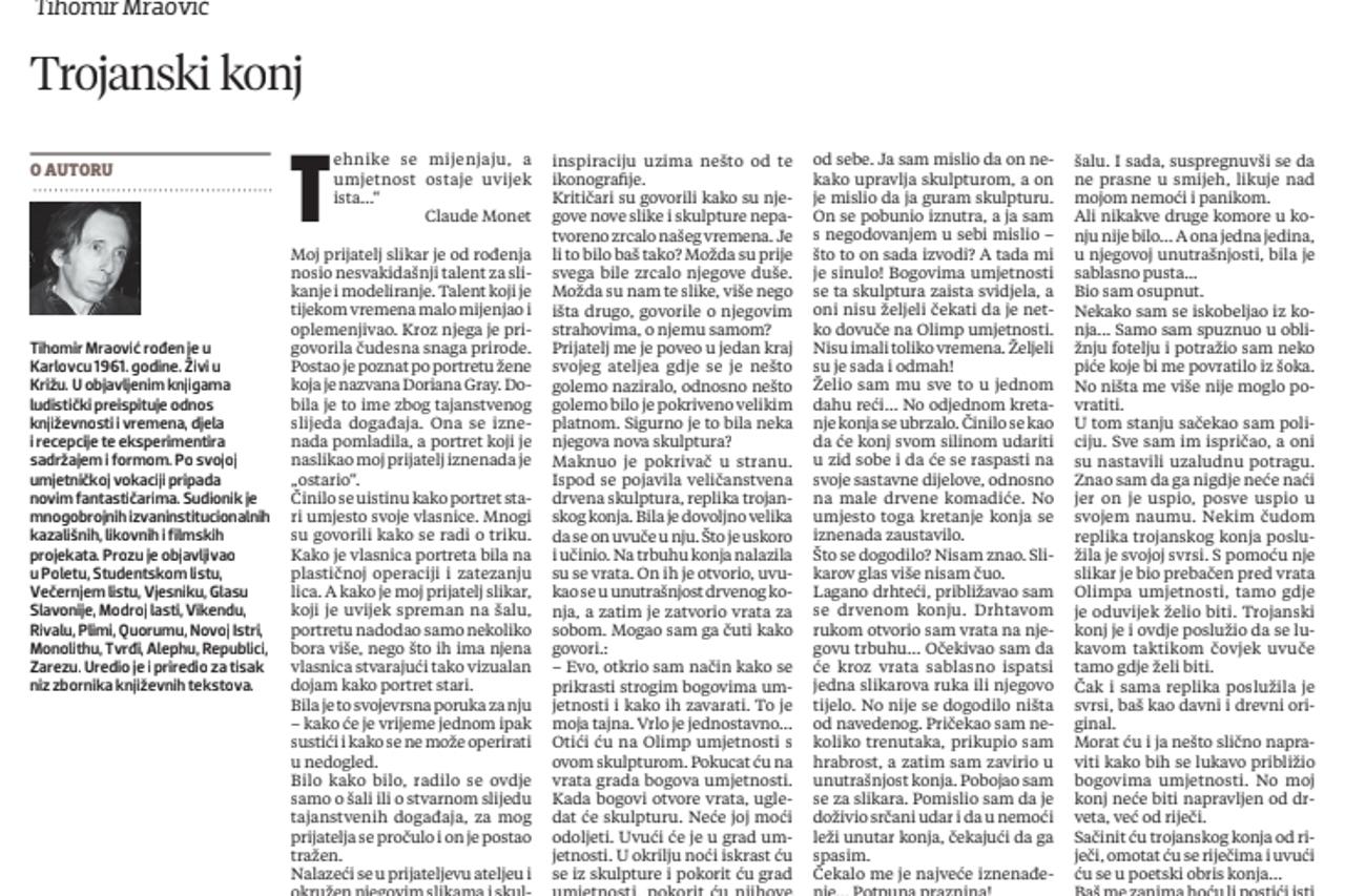 4 KRATKA PRIČA Trojanski konj Kratka priča “Ranko Marinković” zaštitni je znak Večernjeg lista. Od 1964. godine svake subote izlaze prozni tekstovi poznatih i manje poznatih autora.