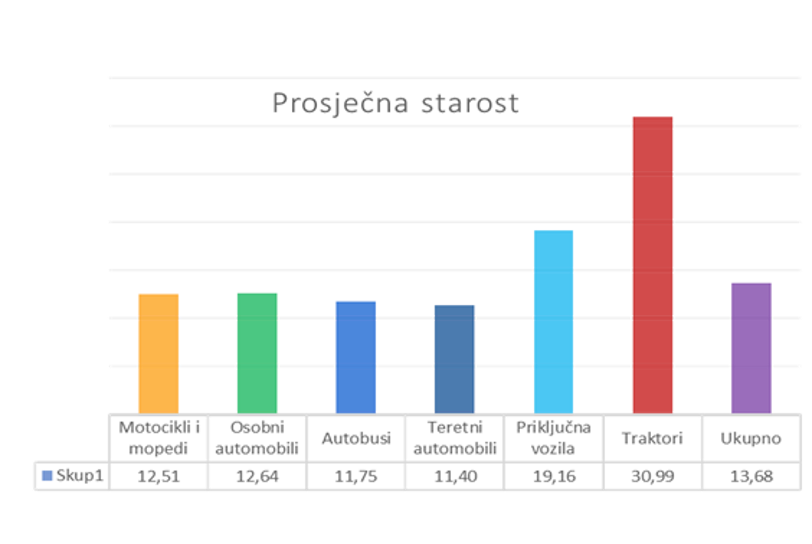 Prosječna starost vozila prema vrstama vidljiva je u prikazanom dijagramu: