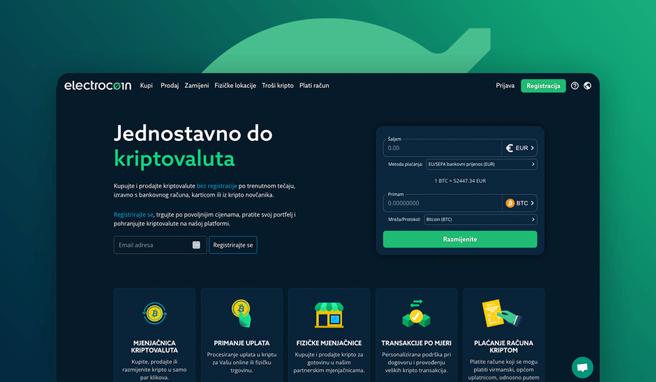 Electrocoin Trade mjenjačnica (https://electrocoin.eu/hr) je platforma za trgovanje kriptovalutama koja korisnicima omogućuje trgovanje širokim spektrom kriptovaluta bez potrebe za prethodnom registracijom na platformu, dok registrirani korisnici ostvaruju dodatne pogodnosti poput nižih naknada za trgovanje i praćenja svog portfelja kriptovaluta.