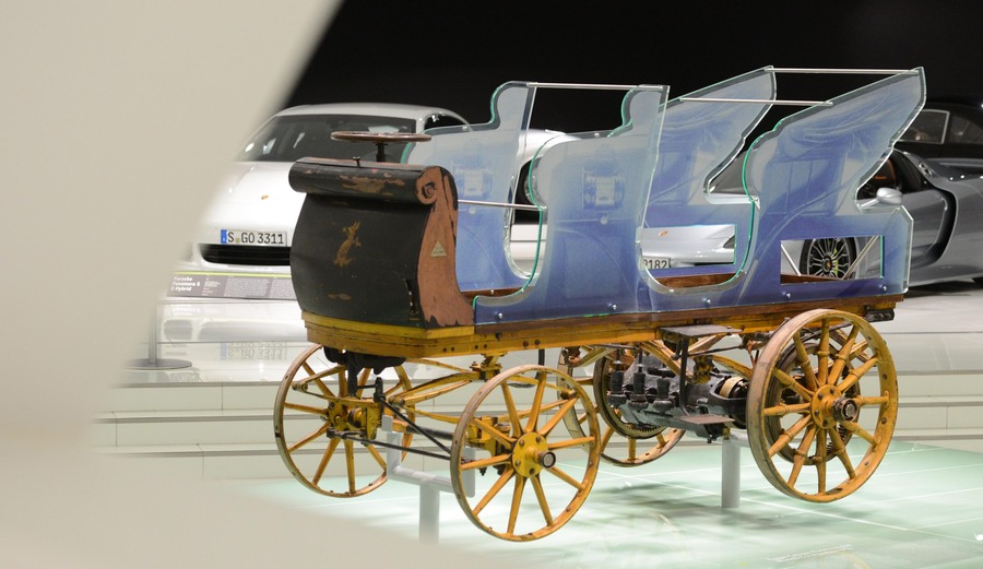 Prvi model koji je konstruirao osnivač tvrtke Ferdinand Porsche bilo je električno vozilo koje izgleda poput kočije bez konja.