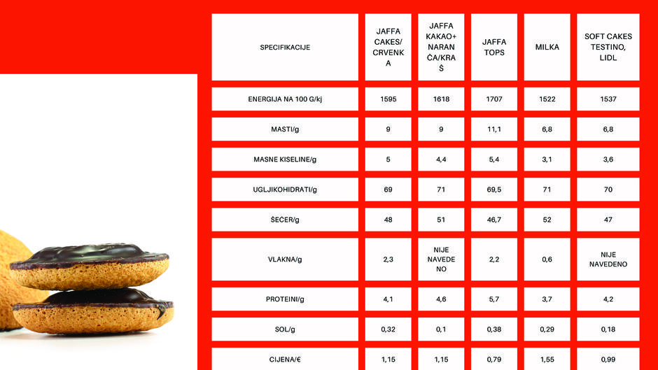 Jaffa cakes; Crvenka, 150 grama, 1,15€, zemlja porijekla: Srbija