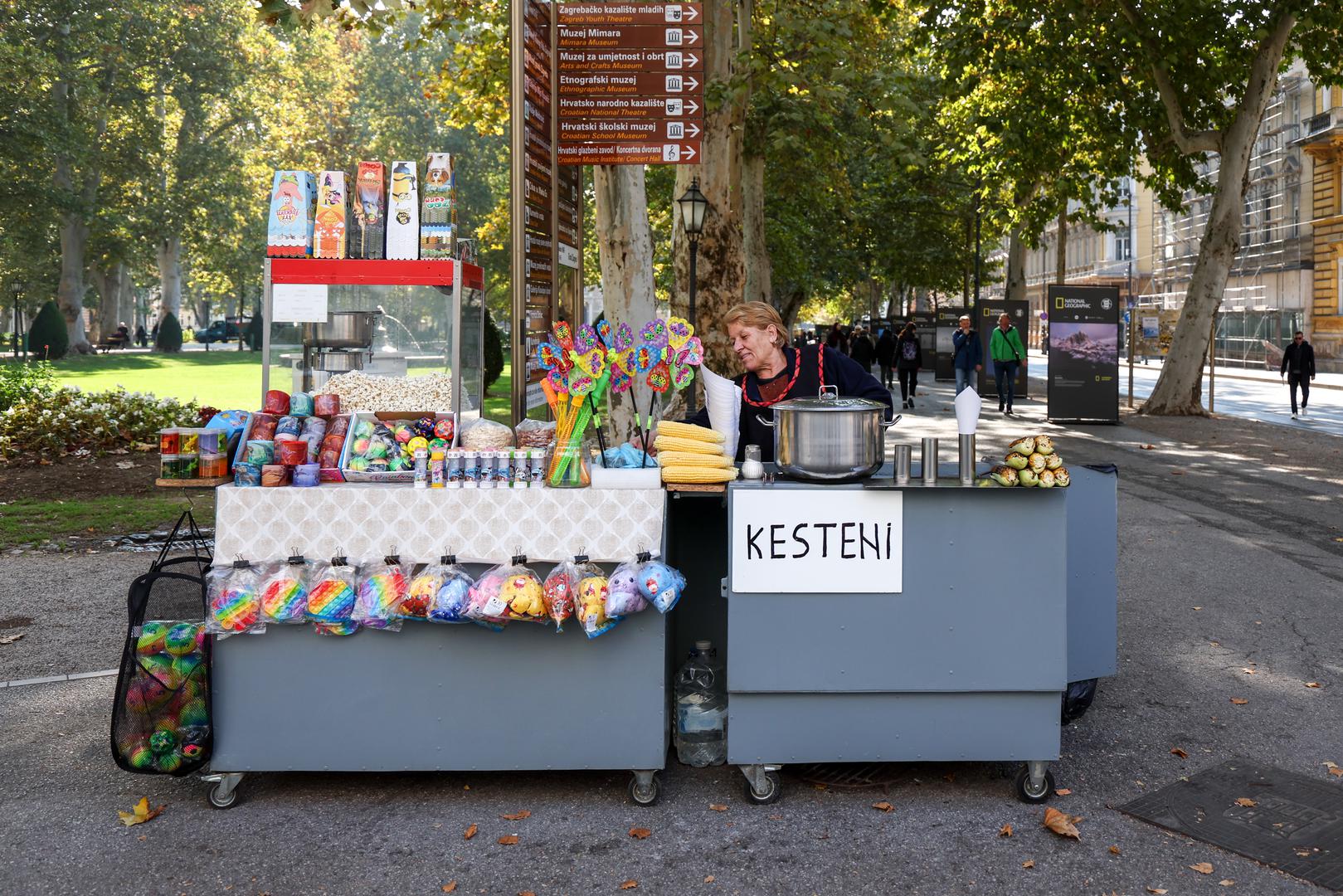 Prva stanica bila nam je Cvjetni trg, gdje se već više od pola stoljeća svake jeseni širi miris kestenja koje peče i prodaje Hakik Ibraimi. I ove sezone na svome štandu nudi tri različite mjerice, pri čemu mala stoji pet, srednja sedam, a velika osam eura, i cijene su im, napominje, iste kao lani.