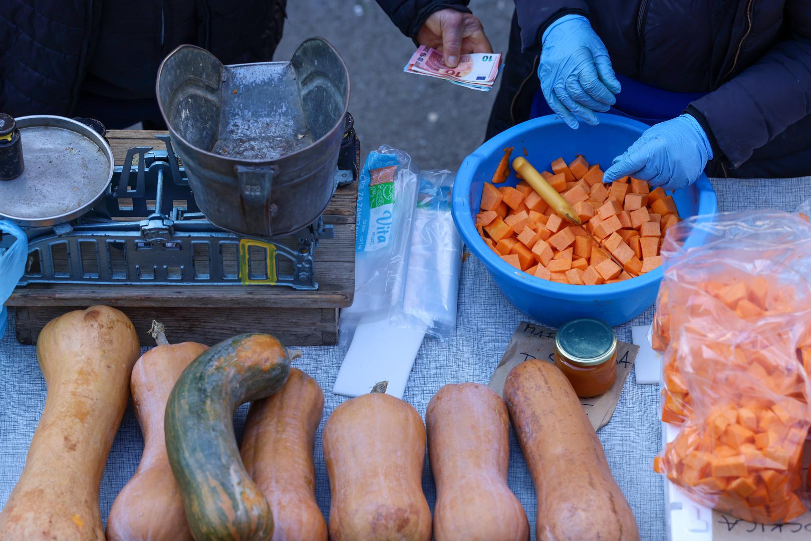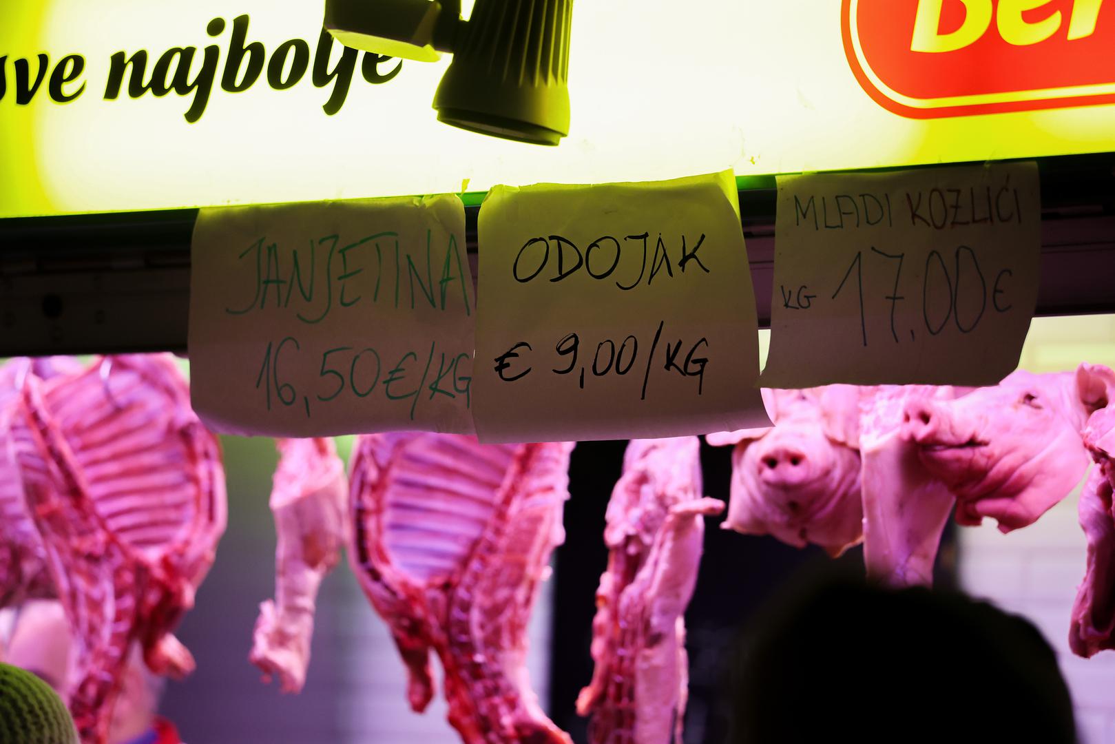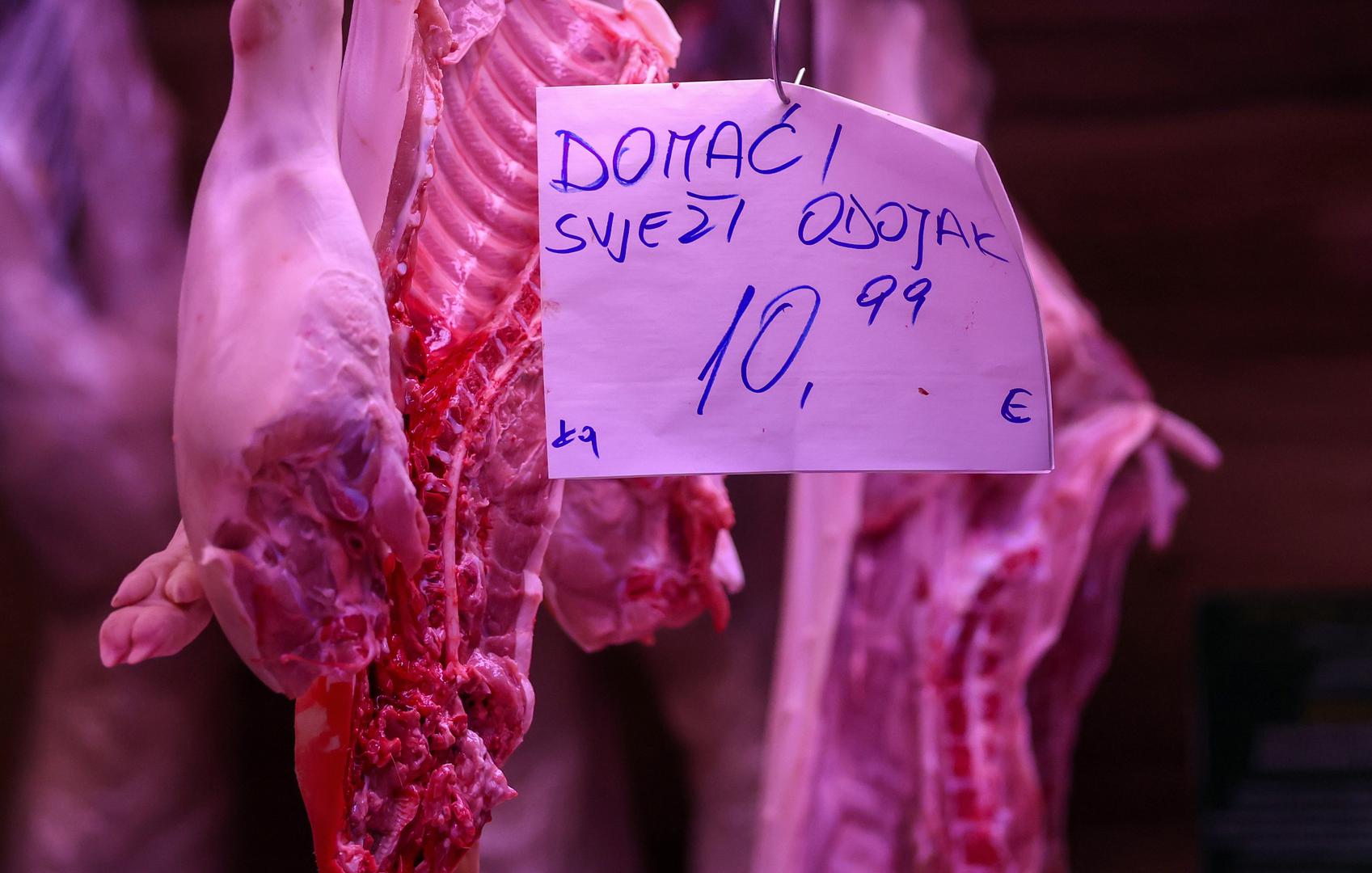 Domaći odojak se nudi za 10 eura po kilogramu. Najveća potražnja je za mesom i suhomesnatim proizvodima kojeg ima na svakom koraku.
