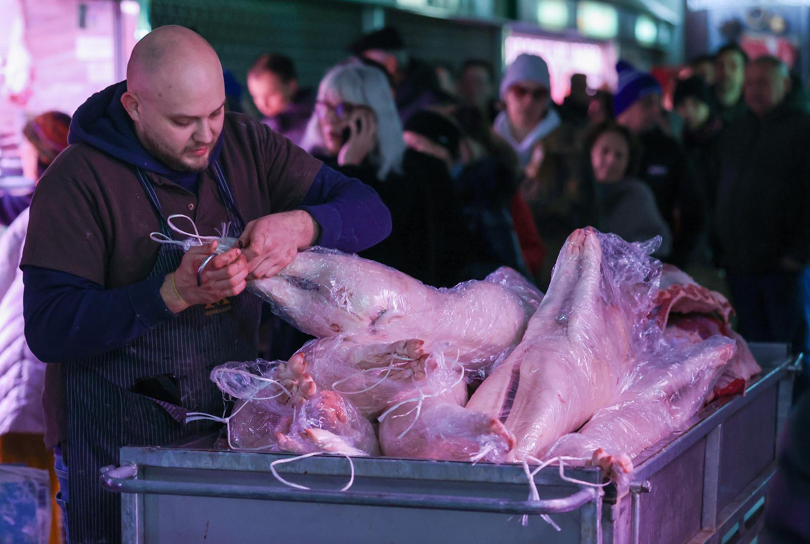 Uoči kraja godine na zagrebačkoj tržnici Dolac jutros su se stvorile velike gužve, a najviše za kupovinu odojka.