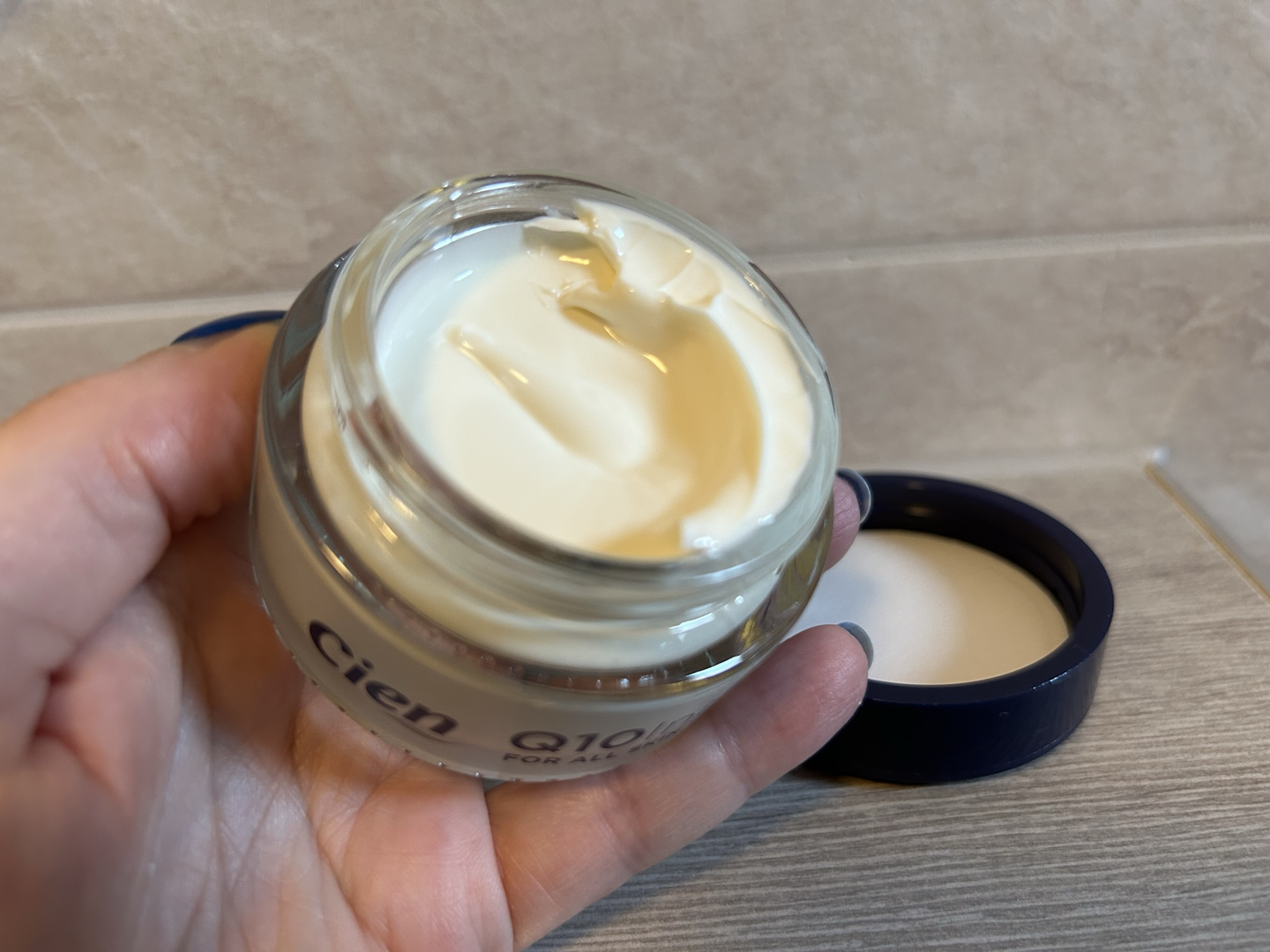 Treća isprobana povoljnija noćna krema za osobe stare između 30 i 50 godina Lidlova je Cien Q10 Intense krema, čijih 50 ml stoji 2,89 eura. Ugodnog je mirisa. Teksturom je gušća, ali lako se razmaže i lice kremu brzo upije. Neznatni zaostali masni film na licu tek se kratko osjeti. Koža je ujutro glatka, djeluje odmorno, manje bore djeluju zaglađenije. Iako proizvođač navodi da je za sve tipove kože, preporučiti ovu kremu možemo za suhu i mješovitu kožu, ali ne i za jače masnu. Pruža 24-satnu hidratizaciju, pomaže obnavljanju kože, smanjuje blaže i srednje bore. Krema sadrži učinkovitu formulu s antioksidansima Q10 i vitaminom E.