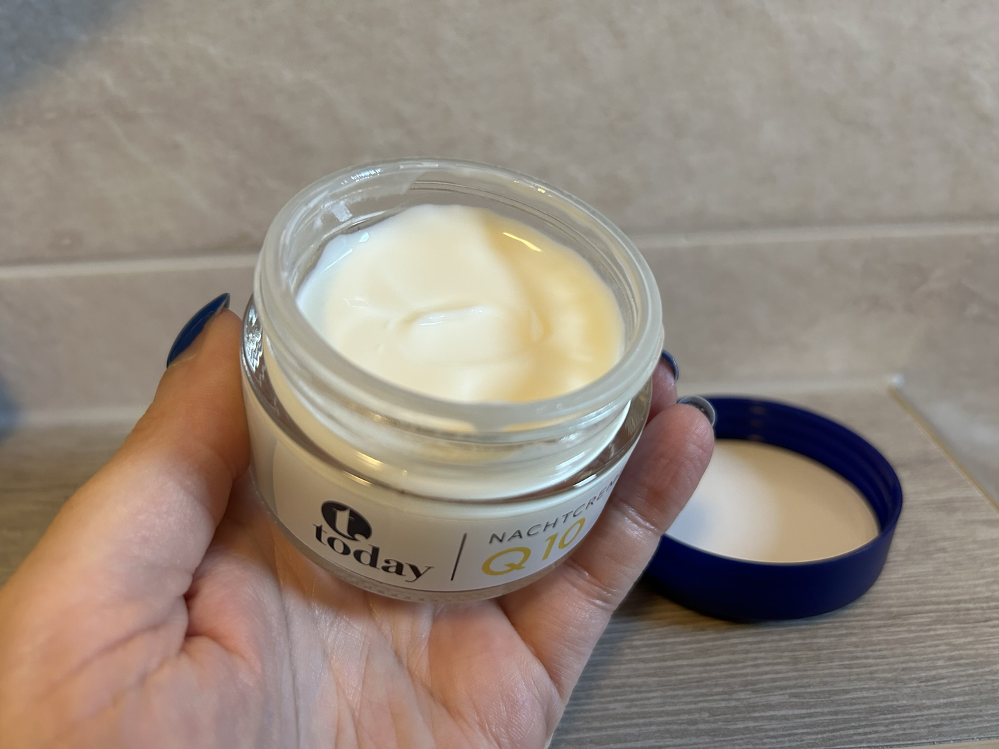 U noćni tim s Bipinih smo polica odabrale Today Q10 kremu, čijih 50 ml stoji 2,64 eura – s hijaluronskom kiselinom i alantoinom, bez mikroplastike, za kožu starosti 30-50 godina. Miris ove kreme je nešto intenzivniji, meni pretežak, no kolegica se sa mnom ne slaže. Kaže, odlično miriši, podsjeća na Niveu. Nivea je i meni bila prva asocijacija pri pogledu na kutiju u karakterističnoj bijelo-plavoj kombinaciji. No, nije Niveina, proizvođač je njemački Femia Cosmetic. Uglavnom, oko mirisa i teksture razilaze se mišljenja osobe s mješovitom i one sa suhom kožom, ali i meni, kojoj miris i tekstura ovdje nisu pun pogodak, sutradan ujutro svidio se prizor u ogledalu: lice mi je bilo odmorno i zaglađeno. Krema koja pospješuje regeneraciju kože umirila je i crvenilo na onom dijelu lica gdje je prethodne večeri bilo vidljivo. Učinkom ove kreme jako sam zadovoljna.