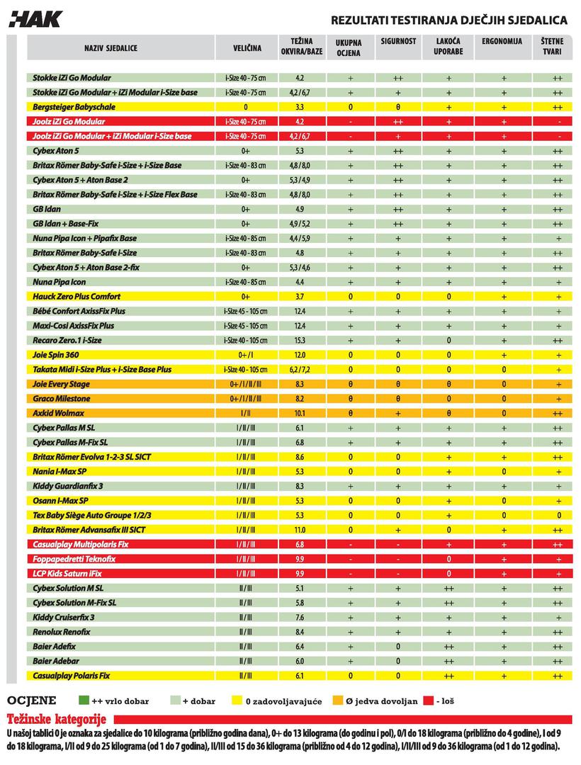 Hrvatski autoklub objavio je rezultate novog testiranja dječjih autosjedalica. Testiranje su proveli HAK i njegovi partneri iz europskih autoklubova, a na njemu su se našle rekordne 42 sjedalice iz svih grupa težine. Ispitivalo se odgovaraju li zakonskim obvezama, a u obzir su se uzimali kriteriji poput sigurnosti, jednostavnosti korištenja, ergonomije i kemijskog sastava materijala.