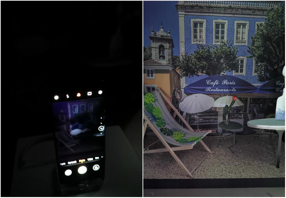 Ovo sam i isprobao snimajući kadar u gotovo posve zamračenoj prostoriji - kamera je uspjela posve rasvijetlili kadar i snimiti cijelu scenu - namještenu terasu nekog francuskog restorana naslikanog na zidu. Prilično impresivno!