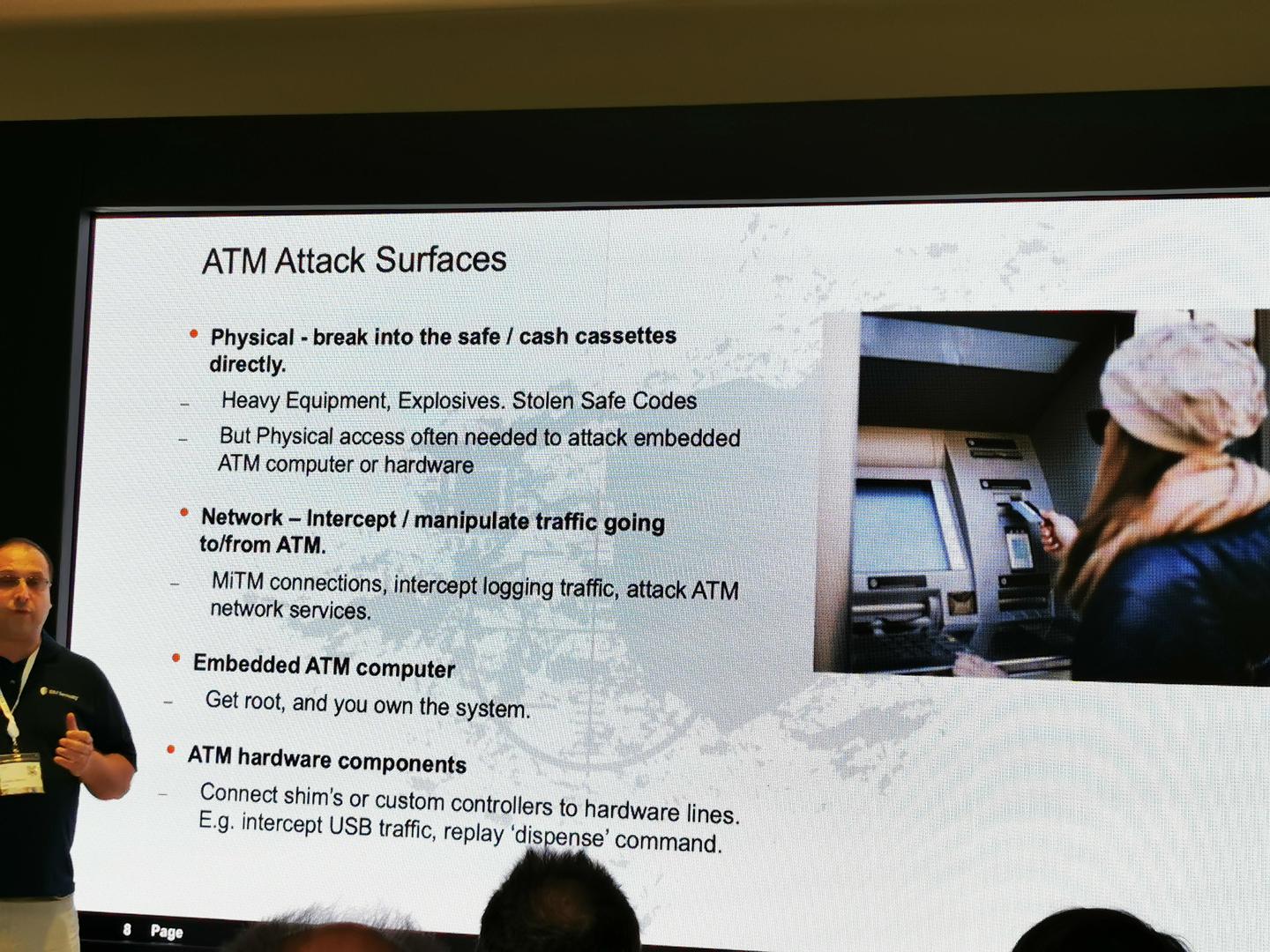 IBM stručnjaci su opisali kako su bankomati često nedovoljno zaštićeni zastarjelim softverom pa i fizičkom zaštitom (izloženi kablovi, nedovoljno jake brave, nedostatak firewalla...). Tako su se dugo u bankomatima znali koristiti Windows NT, a banke su znale biti nevoljke u mijenjanju softvera jer su - funkcionirali.