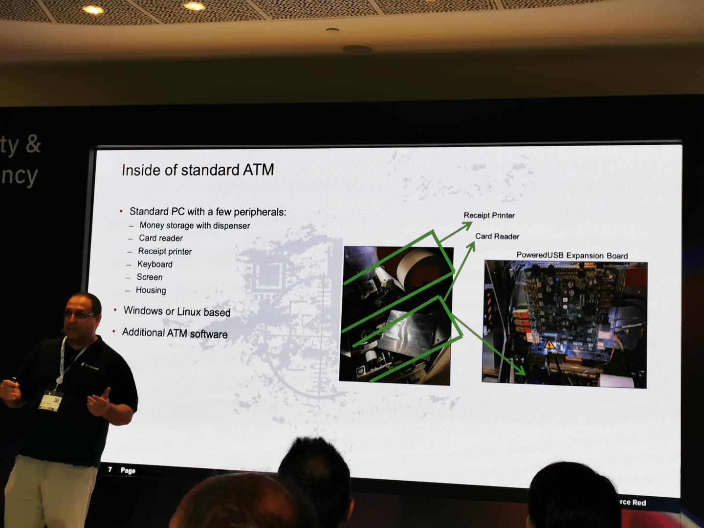 - Uopće nije problem s fizičkom sigurnošću jer je bankomat uvijek izložen na javnom mjestu, nego sa fizičkim pristupom. Ono što se često događa je da su USB portovi bankomata na neki način dostupni. I onda napadač može tipkovnicu povezati s USB portom i tako preuzeti kontrolu. Isto tako može i u sustav upasti preko mreže.