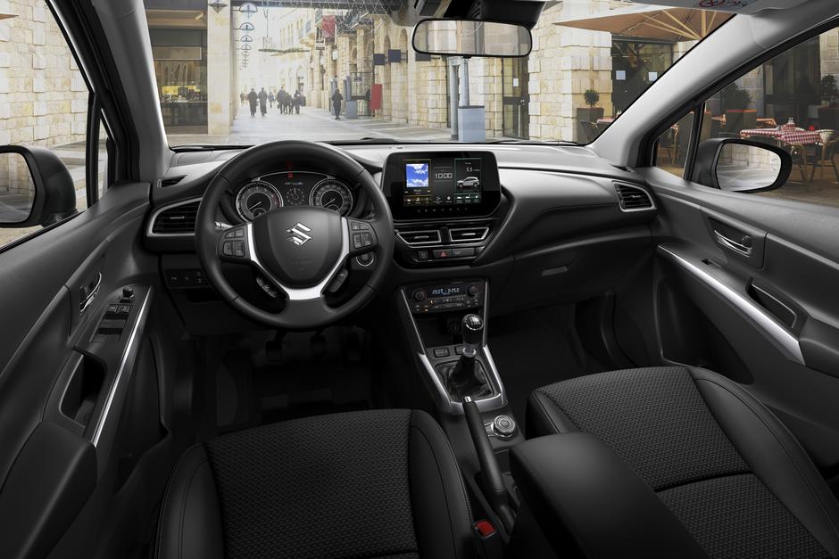 Oprema obuhvaća i dvozonski automatski klimatizacijski uređaj, podesivi prednji središnji naslon za ruku s prostorom za pohranu, stražnji naslon za ruku s držačima za boce, USB utor sprijeda. U novi S-Cross ugrađeni su mnogi sigurnosni sustavi: autonomno kočenje u nuždi koje reagira na druga vozila i pješake, upozorenje na napuštanje vozne trake, vraćanje u vlastitu voznu traku, sveobuhvatni sustav kamera i senzora za pomoć pri parkiranju, upozorenje na nadolazeći promet straga bočno, prepoznavanje prometnih znakova, prilagodljivi tempomat sa ‘stop & go’ funkcijom koji vodi računa o prometu ispred.