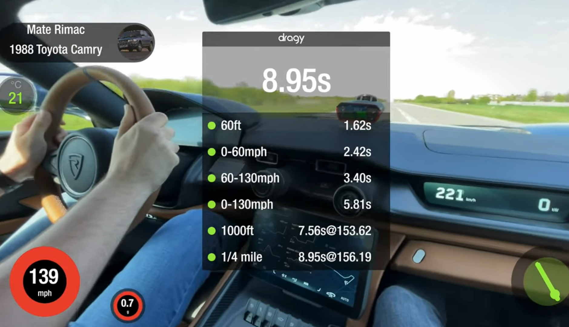 Podsjećamo, Bugatti Chiron trenutno drži rekord s 9.4 sekunde za četvrtinu milje, dok je Rimcu trebalo 8,95 sekundi.