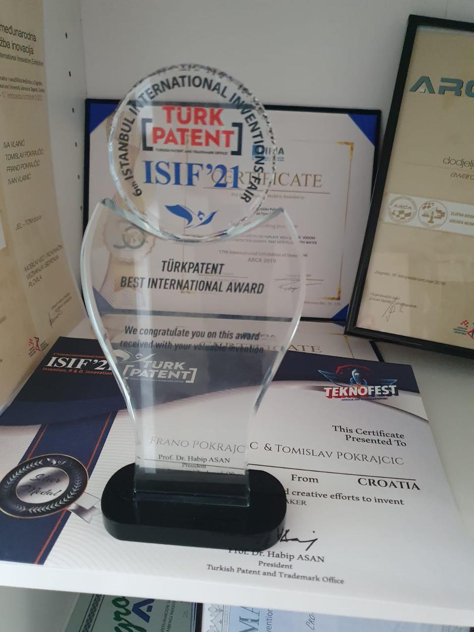 Posebnu nagradu za najbolju međunarodnu inovaciju osvojila je tvrtka JEL-TOM d.o.o. Franje i Tomislava Pokrajčića za inovaciju „Box barijera za zaštitu od poplave koja se puni vodom“. Riječ je, dakle, o pet srebrnih i tri brončane medalje uz posebnu nagradu za međunarodnu inovaciju tvrtke JELTOM d.o.o. Franje i Tomislava Pokrajčića. Osim odličnih rezultata na Sajmu, dogovorena je buduća suradnja Udruge inovatora Hrvatske sa Tehnoparkom Istanbul te Sveučilištem Quatar, koji će se ujedno i predstaviti na nadolazećem međunarodnom sajmu inovacija ARCA 2021. u Zagrebu. Inače je TEKNOFEST sajam koji se održava na istanbulskom aerodromu Ataturk a uključivao je i atraktivne akrobatske letove turskih aviona F-16 i F-14 te azaerbejdžanskog MiG-29. Održavana su i natjecanja u tehnologijama poput biotehnologije, pametnog prijevoza, robotike, letećih automobila, raketnih i bespilotnih sustava.. Događaj organizira turska fundacija T3.