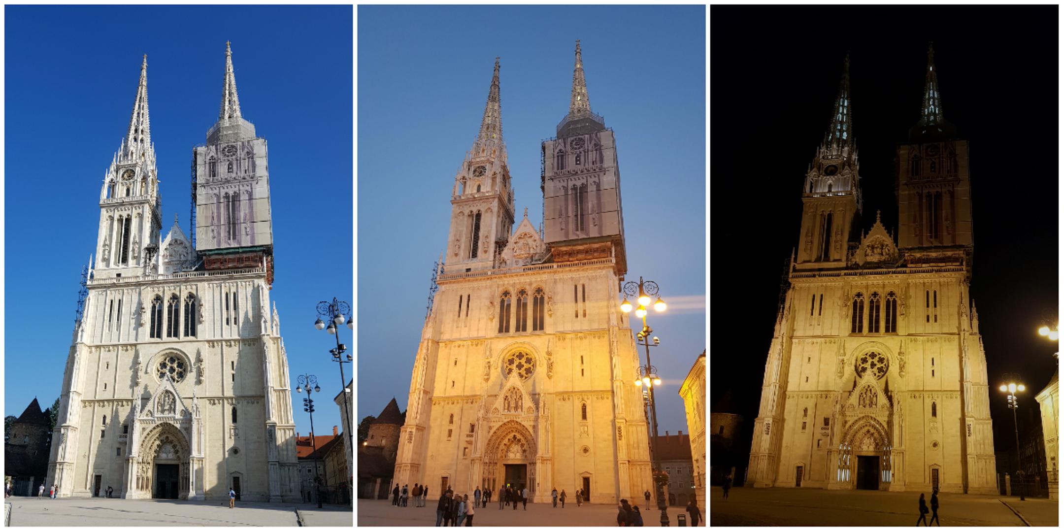 Katedrala snimljena po danu (15 sati), predvečer (18.50) i navečer (21.00)