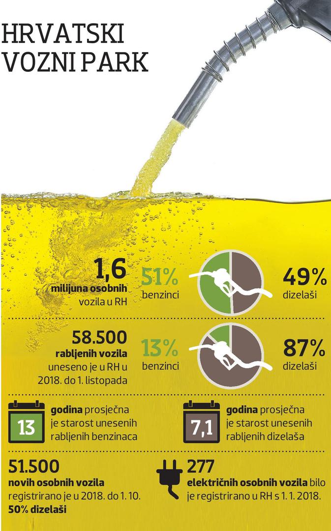 Unos dizelaša u Hrvatsku iz drugih članica EU, a najviše iz Njemačke, još je veći nakon što su neki tamošnji gradovi donijeli odluku o zabrani prometovanja tih vozila na njihovu području. Pejić tako iznosi podatak da je u ovoj godini do 1. listopada u Hrvatsku uneseno 58.500 rabljenih osobnih vozila i da je čak njih 87 posto s dizelskim motorom. Dakle, samo 13 posto unesenih automobila su benzinci. Što se tiče novih automobila, od njih 51.500, koliko ih je do 1. listopada u ovoj godini registrirano, 50-ak posto su dizelaši.