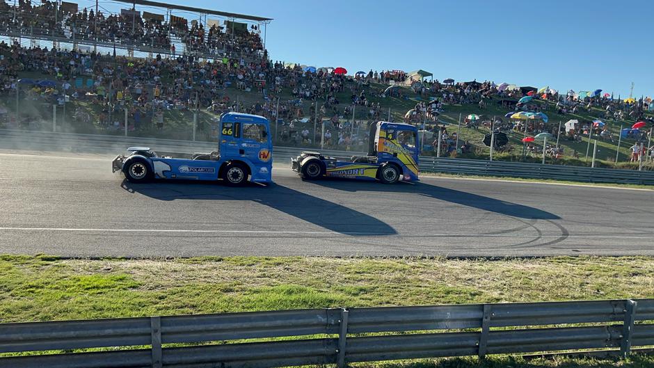 Goodyearovo Europsko prvenstvo trkaćih kamiona svake godine privuče oko 420.000 gledatelja pa je i uz stazu Jarama – ne samo za vrijeme utrka već i za treninga i kvalifikacija – odjekivalo srčano navijanje, nadglasavajući se s režanjem motora i škripom guma. Uvjerili smo se, utrka kamiona događanje je koje pohode čitave obitelji, mlađi i stariji ljubitelji oktana. Dekica na travi i suncobran – kao na pikniku – i pogled na užarenu stazu. A na stazi žestoka borba za svaki metar, za svaku sekundu. Tko će koga uspjeti preteći, s koje će ga strane napasti? Hoće li se spretnije kroz zavoj provući MAN, Iveco, Freightliner, Scania ili Ford? Golijati jure, ali ne brže od 160 km/h i taj je brzinski limit iz kamionskog natjecanja vjerojatno najposebniji u motorsportu.