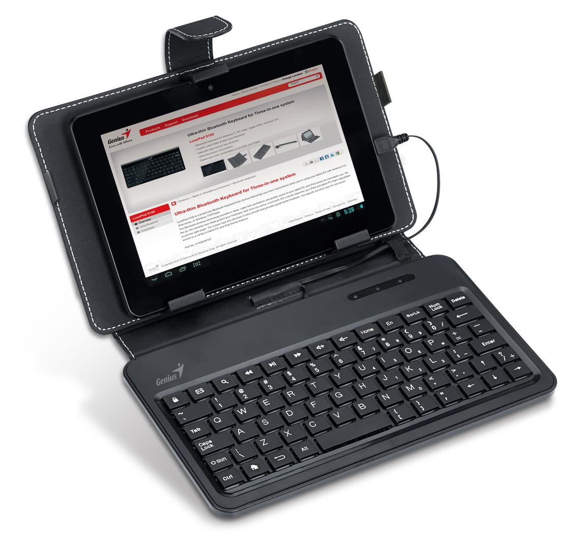 Geniusova tipkovnica s ugrađenom torbicom za 7/8” tablete nije baš luksuzna kako joj ime sugerira, ali za svoju cijenu itekako puno daje: pretvara nevelik tablet u još iskoristiviju spravu koja ponekad može zamijeniti “pravo” računalo. Torbica čini tablet sigurnijim na udarce, padove i ostala neočekivana iznenađenja, a kad je rasklopite, služi kao stalak.