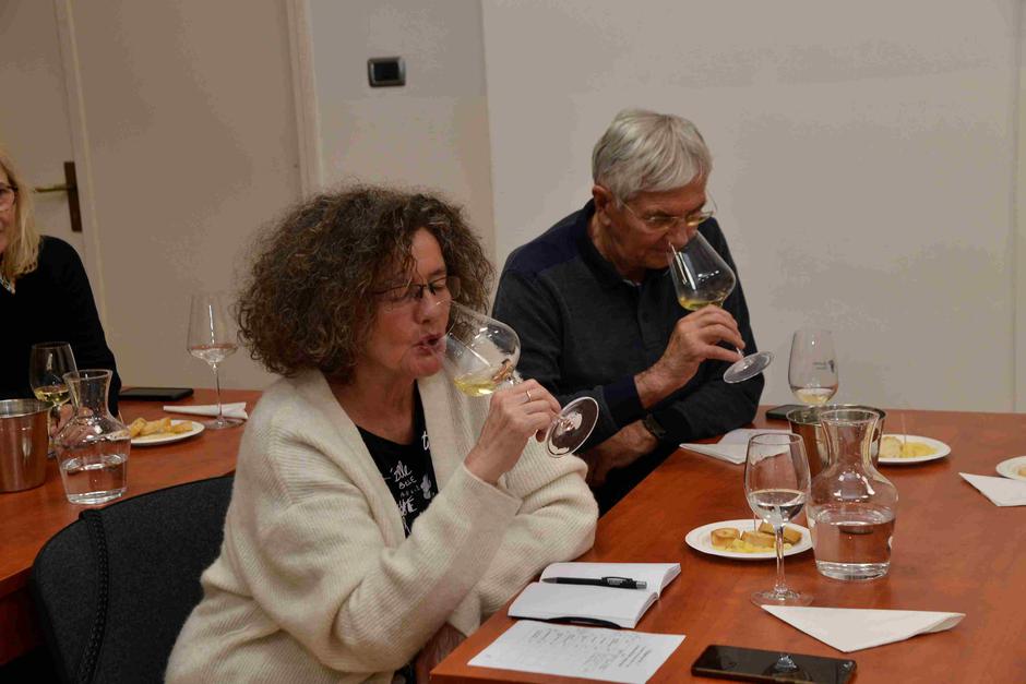 - Po meni, maraština zaslužuje biti najutjecajnija bijela sorta juga zbog svih svojih kvaliteta. Njezina vina ne moraju biti samo ljetna, imaju mogućnost i da odleže, ako vinar nađe prostora da tako s njom napravi, rekao je Andabaka. Maruška Maraština berbe 2024. bilo je prvo vino koje smo probali. Pokazalo nam je jednu osobinu koju imaju sva vina vinarije Vizzulin, a to je da ih treba pustiti da se 'otvore' u čaši kada pokazuju sve svoje kvalitete. Maruška je vino dobilo ime po Reljićevoj majci čija je slika i na boci. Riječ je o laganom vinu ali s dovoljo slojevitosti i u aromama i u okusu, upravo da je se ne mora svoditi samo na ljeto. Druga je osobina koju dijele sva vina svježina, što vinar i njegov enolog pripisuju terroiru Petrova polja gdje se vinogradi nalaze s jednim manjim udjelom vrhunskih položaja, a gdje su svi na višoj nadmorskoj visini od onih bliže obali. Ovdje su položaji na 307 metara. Sljedeći je bio Pošip berbe 2022. gdje već godina berbe signalizira kako se ne radi o uobičajenom pristupu kod većine vinara da se pošio rasproda svjež, već vinar ima luksuz vremena pričekati svoje vino. Kako je rekao Franjo Francem, čovjek koji je uobičajeno smatran najvećim vinskim autoritetom u nas, tako se radilo nekada, čak je bilo i zabranjivano pošip puštati na tržište prije dvije godine odležavanja. To se ovdje i vidi po strukturi, notama u okusu i mirisu gdje je sve što se od pošipa očekuje, u smislu da obuhvaća sve što se pošipu pripisuje, bez iznimke, dakle. Ono što je dodatno interesantno jest da su ova bijela vina, kao uostalom i praktično sva vina kja dolaze iz ove vinarije odležavana u inoks bačvama. Ocjena je kako je rezultat krajnje iznenađenje da su ovakva vina nastala bez prisutnosti drveta.