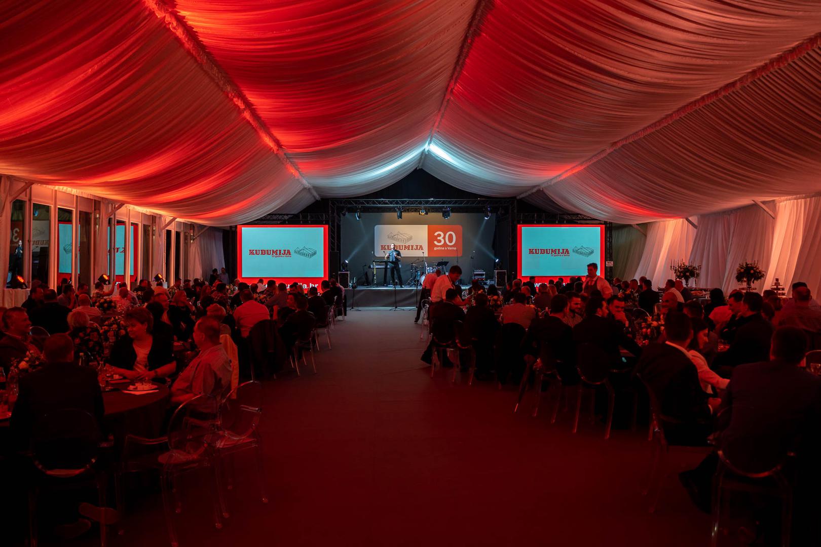 U pozdravnom govoru Dario Kudumija, direktor tvrtke osvrnuo se na brojčane pokazatelje poslovanja: „1997. imali smo 600 m2 šatora, a danas ih u vlasništvu imamo preko 100.000 m2. Godišnje imamo preko 340.000 m2 montiranih šatora, 34.000 m2 montiranih hala, 80.000 m2 montiranih podova. Preko 15 godina imamo vlastitu proizvodnju cerada i aluminijskih konstrukcija u 2 hale, a možemo se pohvaliti da smo ove godine otvorili novi, moderniji i učinkovitji pogon za proizvodnju cerada i aluminijskih konstrukcija.“