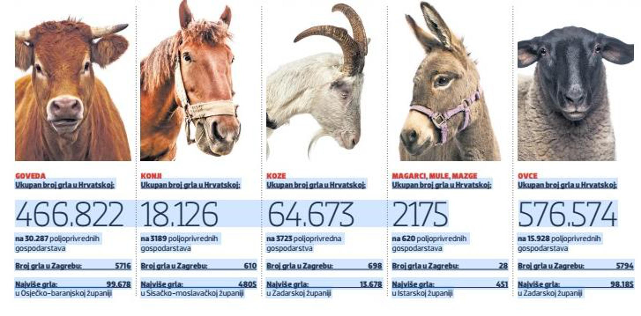 Na hrvatskim je poljoprivrednim gospodarstvima u lanjskoj godini mukalo, kokodakalo, gakalo, blejalo, revalo, roktalo... više od 1,2 milijuna grla stoke. No da je Agencija za plaćanja u poljoprivredi, ribarstvu i ruralnom razvoju (APPRRR) preuzela i podatke Jedinstvenog domaćeg registra domaćih životinja Hrvatske poljoprivredne agencije (HPA), druge agencije resornog im Ministarstva poljoprivrede, statistika bi samo sa svinjama koje nisu u sustavu potpore bila “pojačana” na više od tri milijuna, a s peradi koja kljuca po seoskim dvorištima i na više od pola milijarde.