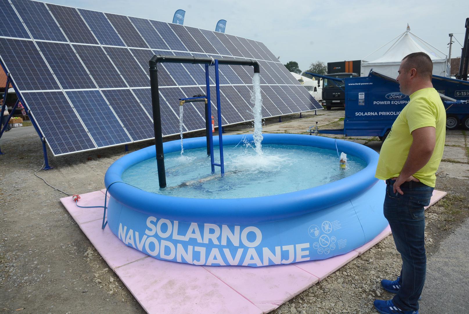 - Ovo što smo prvi put na Bjelovarskom sajmu izložili, sa sigurnošću mogu reći da je najmoćnije u Hrvatskoj. Nitko nema ovako složen sustav za navodnjavanje. Naime, riječ je o 15 kilovata panela, a pumpa koja se nalazi u vodi jest 11 kilovata. U prijevodu, ova pumpa u jednoj minuti baci oko 500 litara vode. Ona se ujutro sama može upaliti kada dođe sunce i podigne je na određenu voltažu te radi sve dok sunce ne zađe. Dnevno izbaci 50 do 100 kubika vode dnevno, a površina koja bi se mogla s ovime navodnjavati doslovno je neograničena - objasnio je Milan Popović iz Zagreba. Osim toga, nude i solarne prikolice koje su mobilne te se prevoze na potrebne dijelove polja od kuda skupljaju energiju za daljnje navodnjavanje. Ovakva vrsta navodnjavanja u nekim poljoprivredno razvijenijim zemljama ima veliku iskoristivost, dok u Hrvatskoj je ona još uvijek relativno mala.
