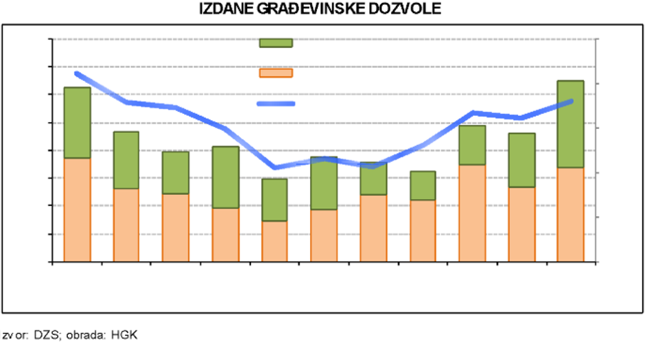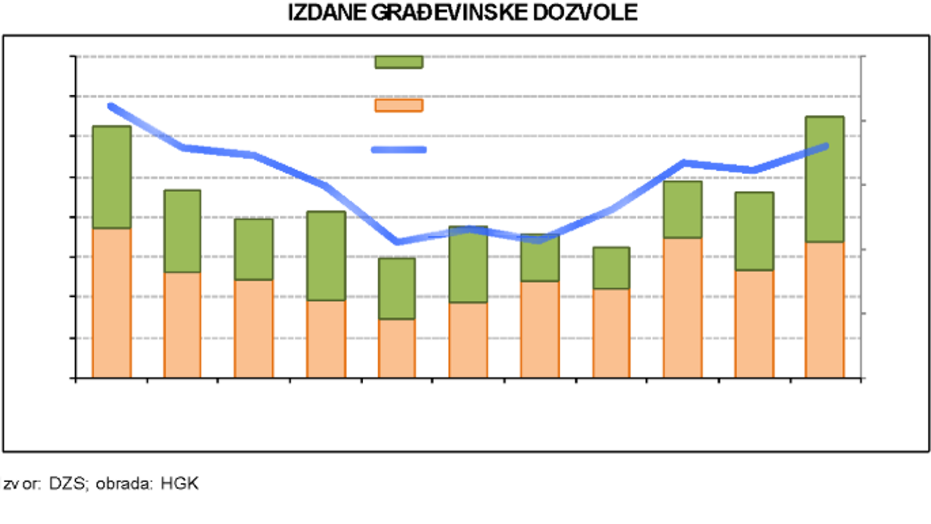 U srpnju ove godine izdano je 798 građevinskih dozvola (689 za zgrade i 109 za ostale građevine), što je 17,9% više nego u istom mjesecu prošle godine (20,0% više za zgrade i 5,8% više za ostale građevine). Uz stagnaciju u veljači, ukupan broj izdanih građevinskih dozvola na godišnjoj razini kontinuirano raste od početka ove godine, s nešto duljim kontinuitetom rasta broja dozvola za ostale građevine (rastu posljednjih deset mjeseci), priopćili su iz Hrvatske gospodarske komore.