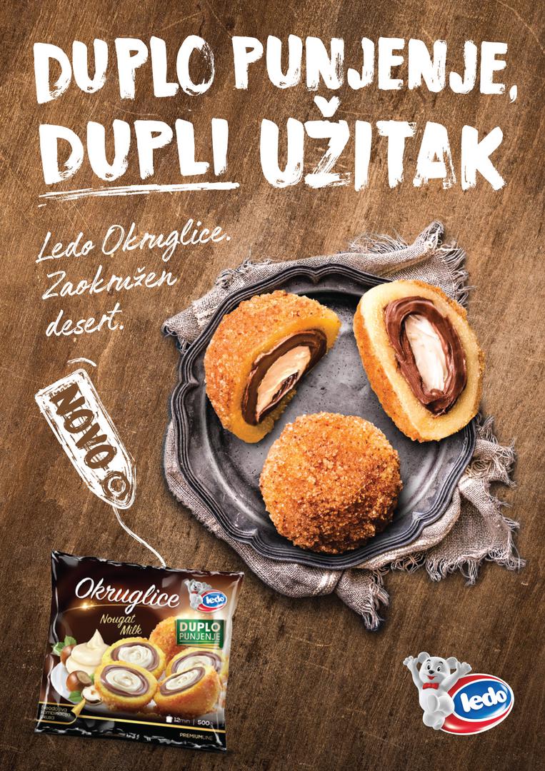 Nove okruglice od ukusnog krumpirovog tijesta posebne su po tome što kriju čak dva neodoljiva nadjeva, od nougata i mlijeka, koji zajedno pružaju posebnu raskoš okusa i dvostruko veći užitak. Već s prvim zalogajem okruglice Nougat-Milk s duplim punjenjem, vratit će vas u djetinjstvo i podsjetiti na slatke uspomene čiji je sastavni dio uvijek bio i Ledo.