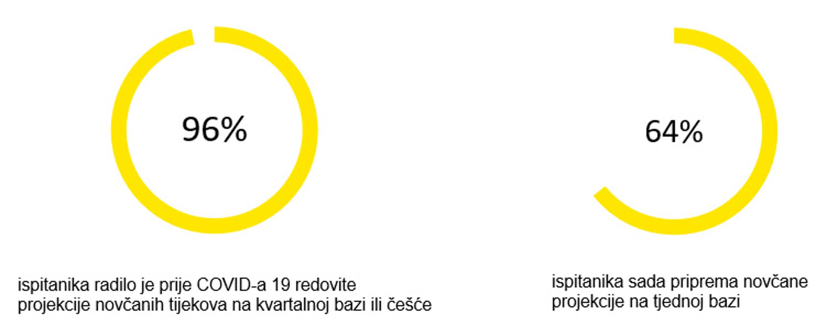 Kada je u pitanju likvidnost, čak 96 posto ispitanika je prije COVID-a 19 radilo redovite projekcije novčanih tijekova na kvartalnoj bazi ili češće, dok trenutno 64 posto njih to radi na tjednoj bazi. „Veliki je fokus stavljen na očuvanje novčanog tijeka, a prioritet upravljanja novcem vrši operativni pritisak na širok raspon tvrtki – ne samo na one s brzim optjecajem novca, nego i na one koje posluju, primjerice, u transportnoj i ugostiteljskoj industriji gdje je potražnja za uslugama gotovo nestala“, objašnjava Ivana Krajinović.