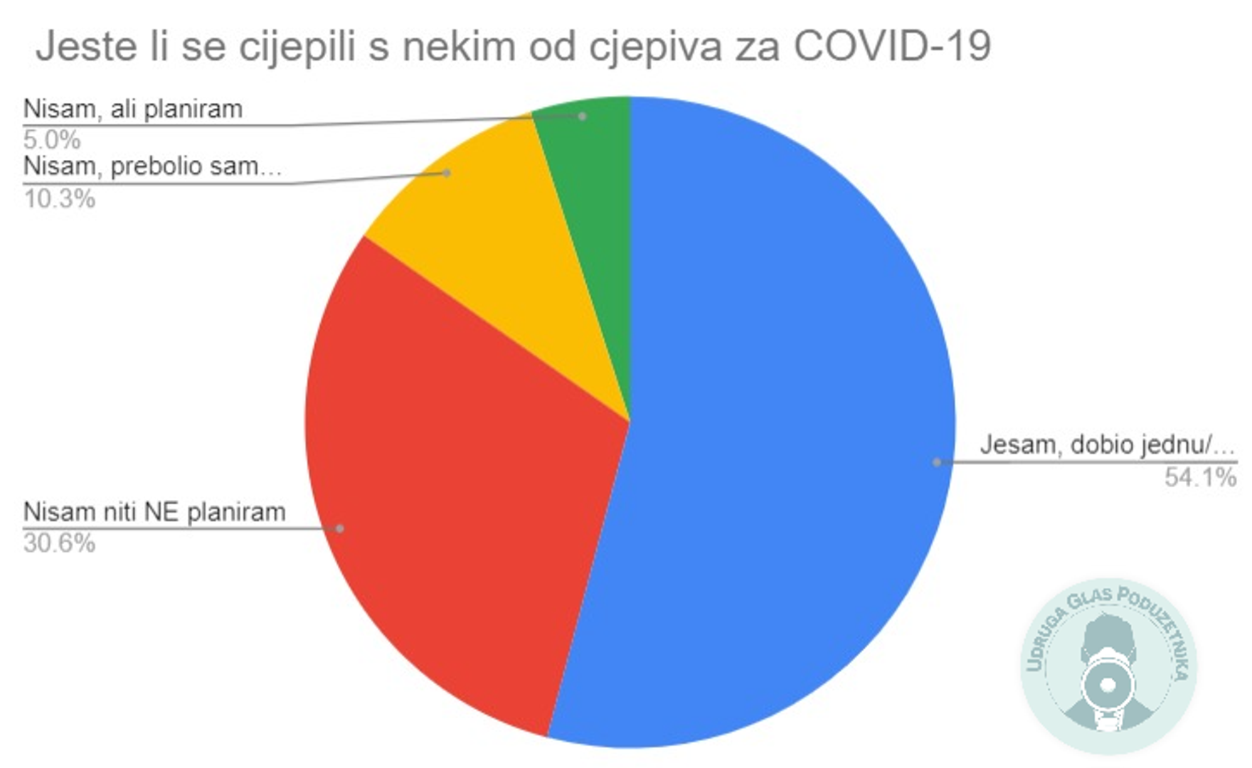 - Više od 54% članova koji su ispunili anketu primilo je jednu ili obje doze cjepiva, a još 5% to namjerava učiniti, što je dokaz da poduzetnici na odgovoran način pristupaju svome zdravlju, ali i dokaz želje da se izbjegne novi val pandemije koji bi dodatno ugrozio hrvatsko gospodarstvo. Oko 10% ispitanih članova preboljelo je bolest, a 30% ispitanika nije se cijepilo niti to planira učiniti - navode iz udruge Glas poduzetnika.