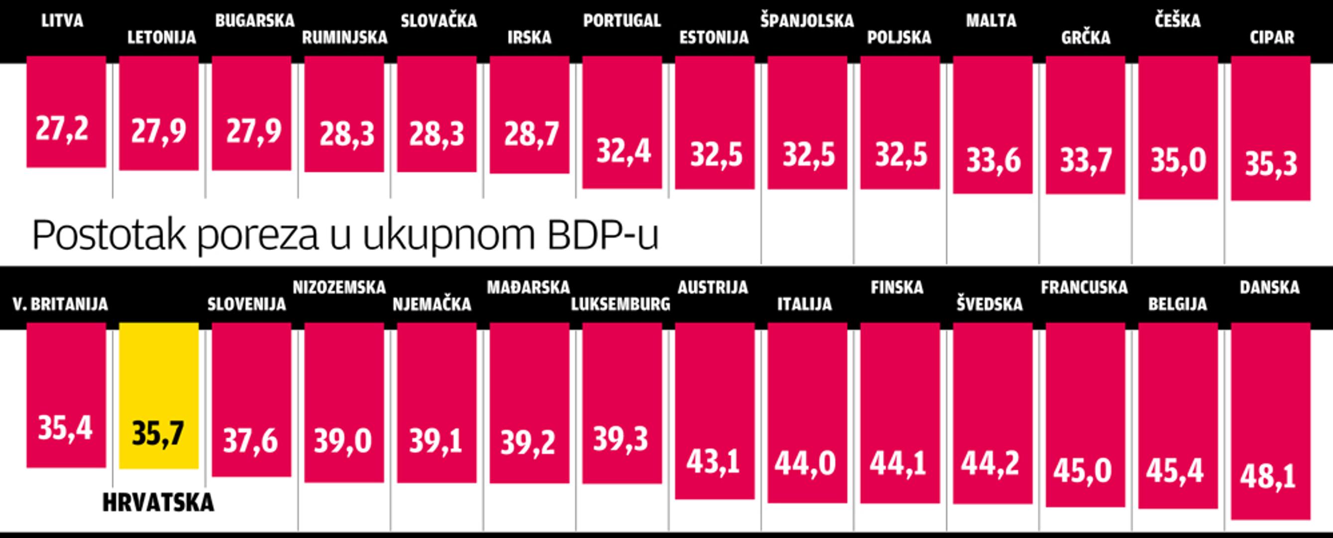 "Hrvatska oporezuje rad puno manje…..nego u EU" Pa to je normalno,u EU su plate 2-3 eura,a kod nas u Hrvatskoj 200-300 eura,i ako ih uopce dobjes na vreme,mislim na siru masu radnika i njohov prosjek plata kod nas,znaci nemozes oporezivatt nesto,ako nemas na sto biti oprezovan.