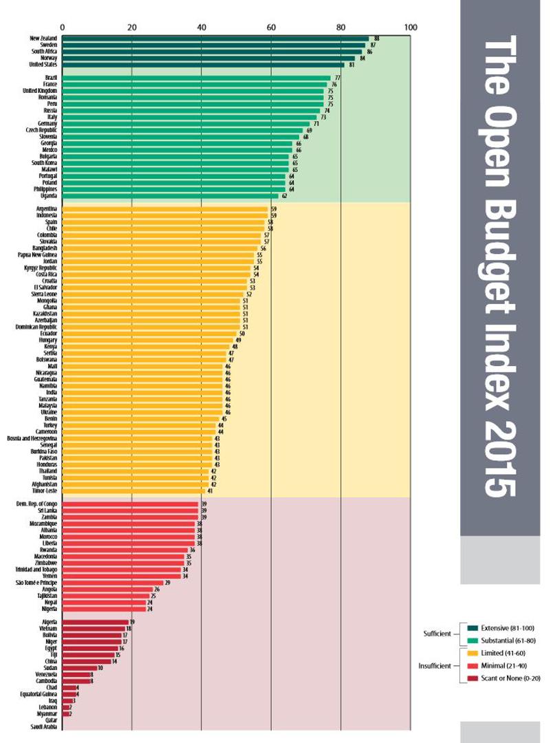 Indeks otvorenosti proračuna za Hrvatsku iznosi 52 boda od mogućih 100, čime se naša zemlja našla u društvu, Sijera Leonea, Salvadora i Azerbejdžana, a transparentnije proračune od nje imaju Bangladeš, Kirgistan i Papua Nova Gvineja.