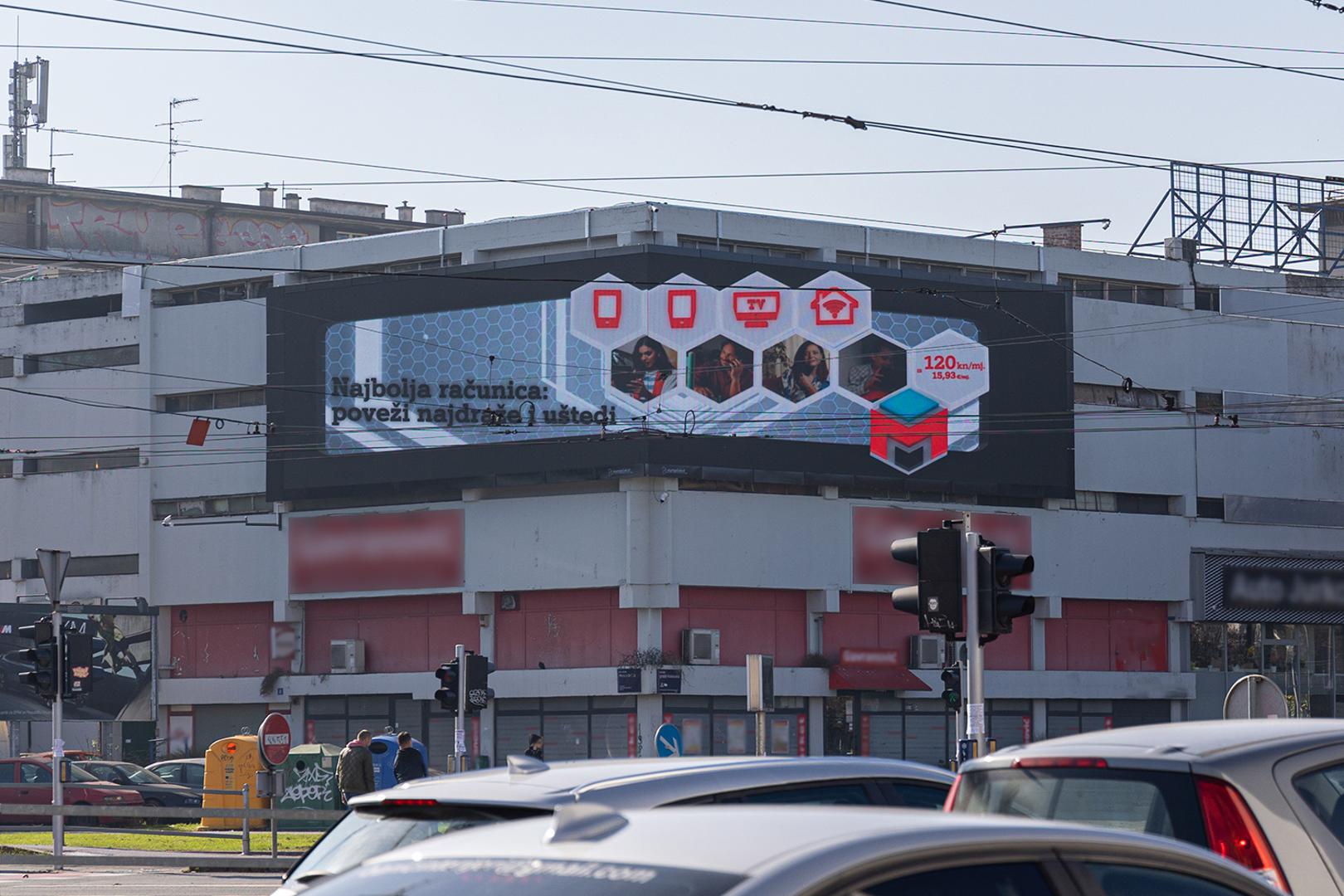 Na najprometnijem raskrižju u Zagrebu, Držićeve i Vukovarske, osvanula je prva hrvatska 3D reklama na jedinom kutnom LED ekranu u Hrvatskoj