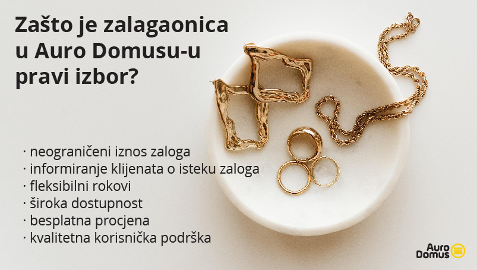 Zalagaonica je usluga koju je Auro Domus namijenio klijentima koji trebaju gotovinu na licu mjesta, ali se nisu spremni trajno odreći svojeg zlatnog ili srebrnog nakita