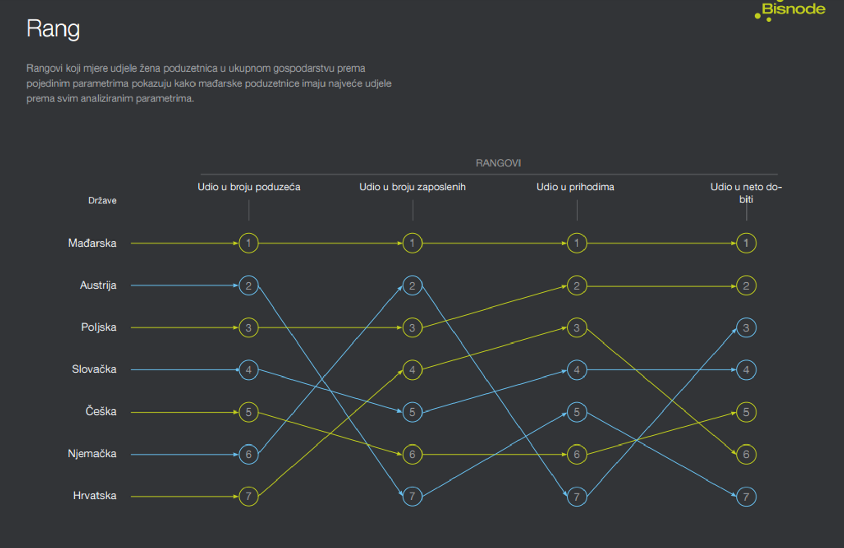 U tu su svrhu Bisnode analitičari razvili specifičan indeks – Bisnode Index of Woman Influence (BIWI) koji utjecaj žena mjeri kroz četiri osnovna parametra: udio poduzeća kojima upravljaju žene u ukupnom broju poduzeća u pojedinoj zemlji, njihovog udjela u broju zaposlenih, prihoda i dobiti u ukupnom gospodarstvu.