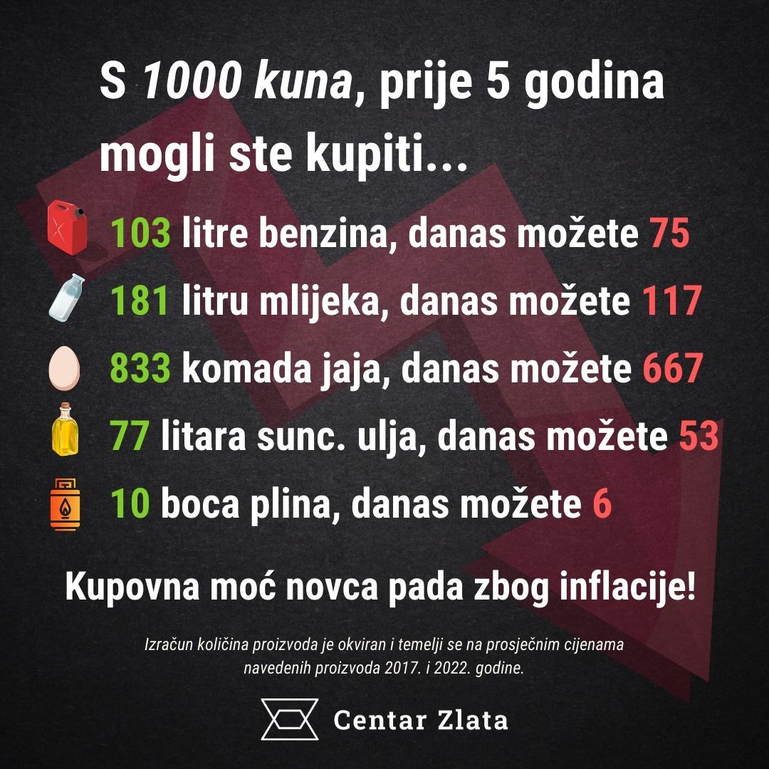 Građani inflaciju osjete na svojim novčanicima, budući da cijene velikog broja proizvoda i usluga koštaju znatno više nego prije, a izgledno je kako se cijene neće nikad spustiti na prijašnje razine, čak i ako se stopa inflacije u budućnosti smanji. U prijevodu, kupovna moć našeg novca sve je manja i taj će se trend nastaviti u narednim mjesecima, ako ne i godinama.