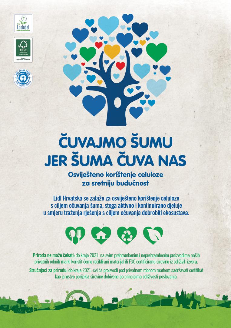 Lidl se zalaže za osviješteno korištenje celuloze s ciljem očuvanja šuma, stoga aktivno i kontinuirano djeluje u smjeru traženja rješenja s ciljem očuvanja dobrobiti ekosustava. Do kraja 2021. teži prebacivanju prehrambenih proizvoda te proizvoda za kućanstvo i osobnu uporabu (uključujući kućanske i kozmetičke proizvode) na reciklirani materijal ili FSC certificirana neprerađena vlakna. U iznimnom slučaju se kod pojedinih proizvoda kod ograničene raspoloživosti FSC certificirane sirovine može koristiti i PEFC certificirani materijal.