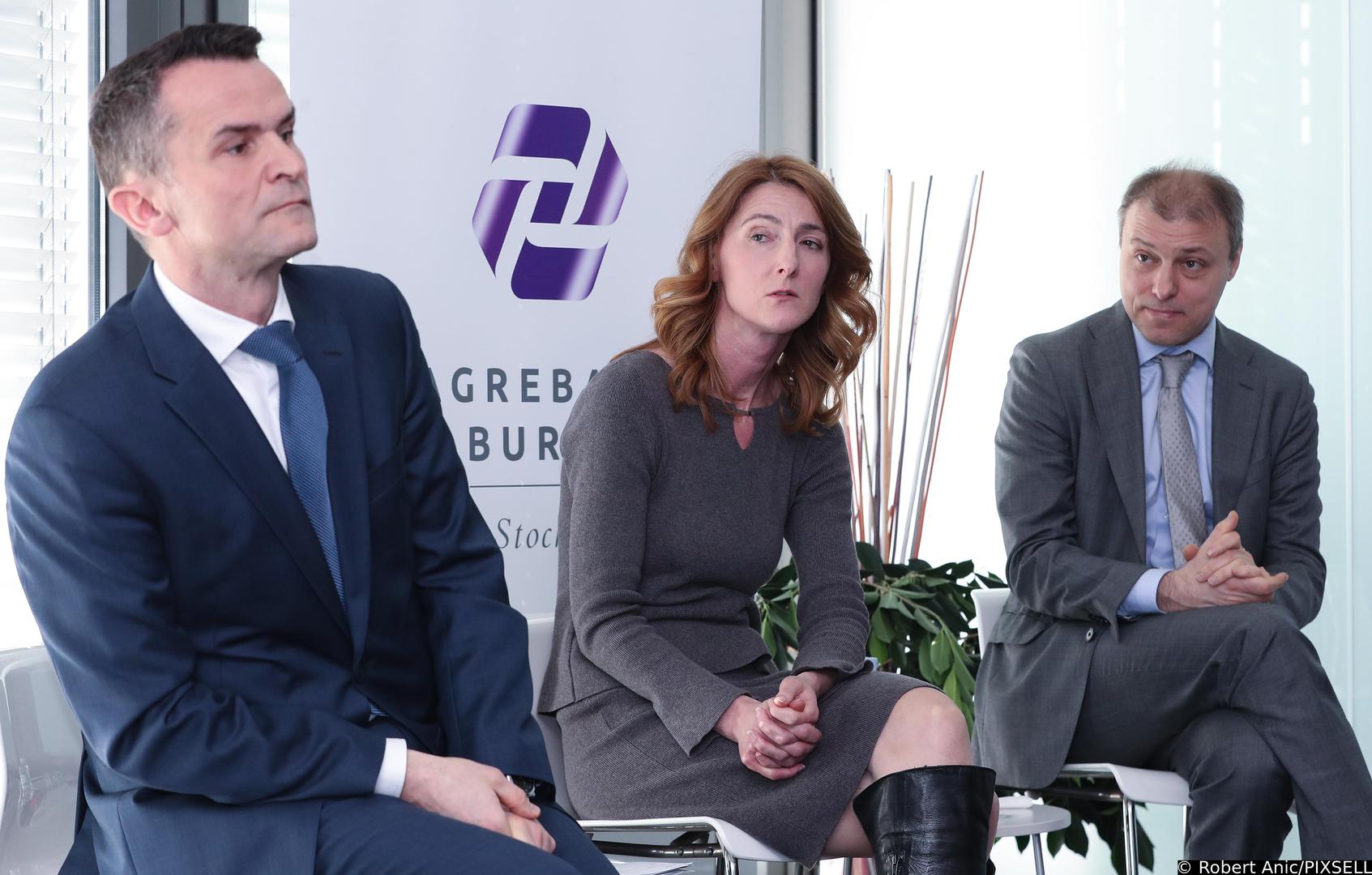 07.02.2019., Zagreb - Na Zagrebackoj burzi odrzan je okrugli stol Akademije Zagrebacke burze pod nazivom "2019. Sto donosi trzistu kapitala i gospodarstvu?". Predsjednik Upravnog vijeca Hanfe Ante Zigman, direktorica Ekonomskih i financijskih istrazivanja RBA Zrinka Zivkovic Matijevic, glavni ekonomist HNB-a Vedran Sosoc. Photo: Robert Anic/PIXSELL