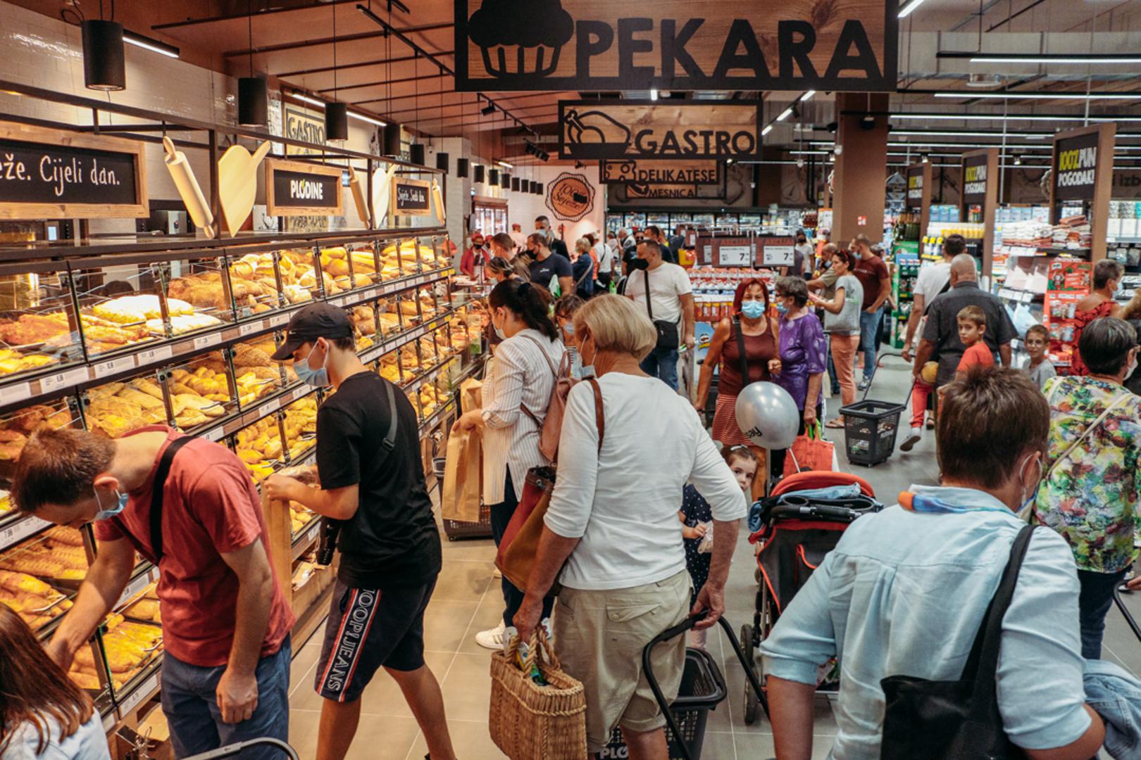 Moderan supermarket u sklopu Z centra prostire se na 2.400 m2, a prilikom uređenja posebno se pazilo na biranje vrhunske opreme i praktična dizajnerska rješenja koja i ovaj objekt svrstava u sam vrh trgovačkih standarda. U prodajnom prostoru svakodnevno će biti dostupni već dobro poznati odjeli samoposlužne pekare, bogati odjel delikatesa, mesnica i topli gastro odjel te zelena tržnica prepuna svježeg voća i povrća. Moderno skladište, komore i razne pripremnice znak su dostupnosti i svježine proizvoda na dnevnoj bazi.