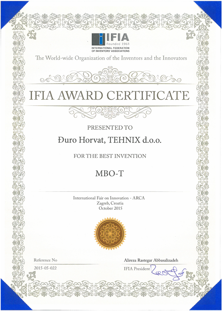 Posebno se napominje da građevine i postrojenja za gospodarenje otpadom trebaju biti u skladu sa zahtjevima najbolje raspoloživih tehnika i tehnologija koje se primjenjuju pri projektiranju, gradnji, održavanju reciklažnih postrojenja. Na razvoju nove tehnologije radili smo više od 15 godina za što smo dobili stotine priznanja i odličja iz cijeloga svijeta. Europska komisija podržava one tehnologije koje daju najbolji stupanj reciklaže, a to je MBO-Te tehnologija industrijske reciklaže otpada razvijena u Tehnix-u.