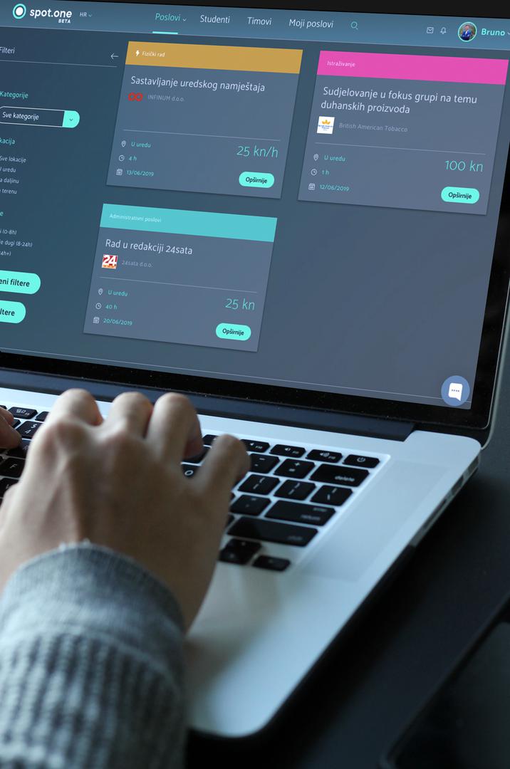 Spot.one je razvijen s ciljem stvaranja jedinstvenog mjesta koje će omogućiti da bez prethodnog iskustva, životopisa i reference, bez obzira na grad u kojem žive ili fakultet na kojem studiraju, studenti ravnopravno startaju prema poslodavcima. Studenti se na platformu prijavljuju svojim studentskim AAI identitetom, a mogu birati između uobičajenih poslova, brzih poslova koje treba odraditi odmah ili izazova/projekata koje mogu odrađivati kroz duže vremensko razdoblje i u timovima.