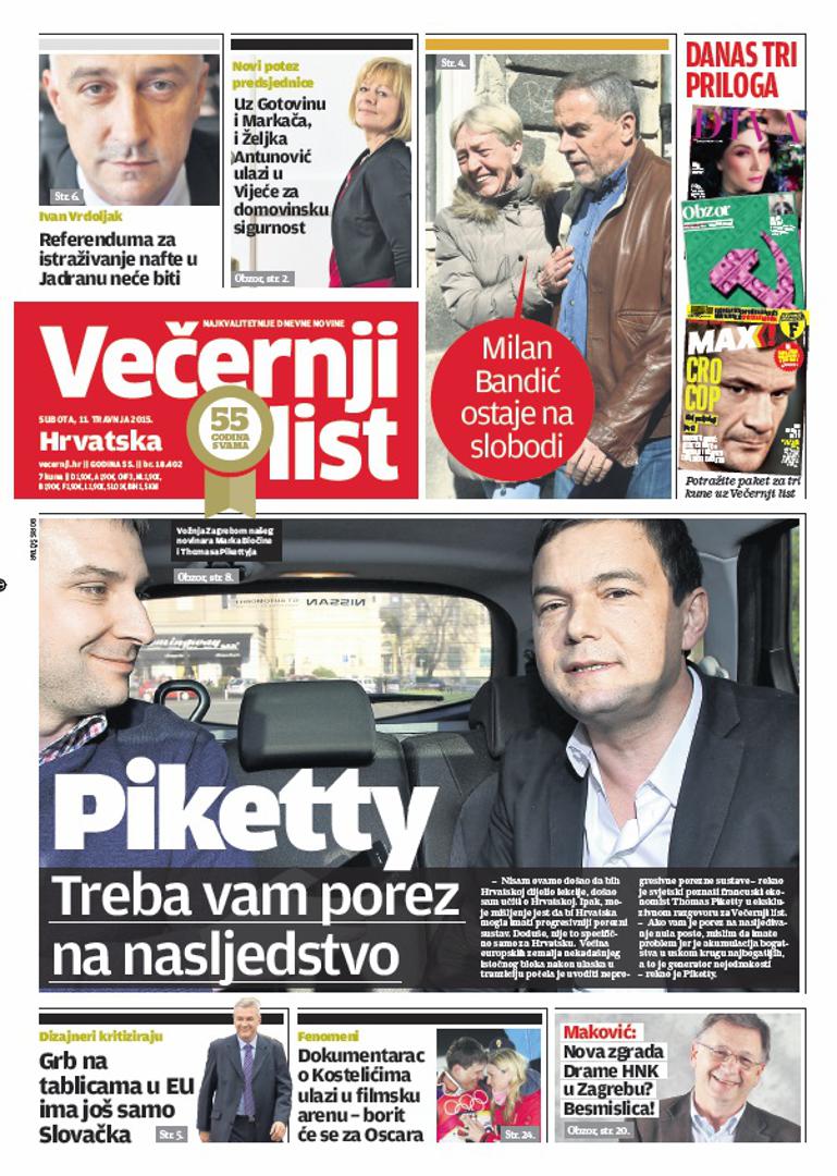 Ipak, kako je kašnjenje u dolasku poremetilo ionako napregnuti Pikettyjev raspored boravka u Zagrebu, i planirani termini zakazanih intervjua za domaće medije radikalno su skraćeni. Ionako komprimirani termin obećan Večernjem listu, praktički je izbrisan iz programa, samo da bi intervencijom i snalažljivošću organizatora i Pikettyjevih hrvatskih izdavača iz tvrtke Profil pronađeno solomonsko rješenje da se dogovoreni intervju obavi u automobilu, za vrijeme transfera francuskog ekonomista na sastanak i sa sastanka s jednim od njegovih najvećih ovdašnjih obožavatelja – hrvatskim premijerom Zoranom Milanovićem.