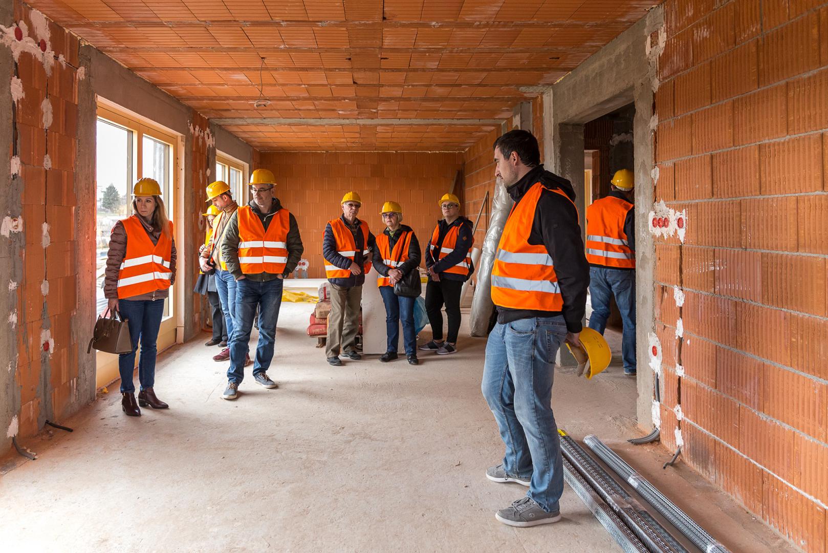 Uspinjemo se do gradilišta kuće na kojem nas čeka vlasnik, arhitekt Matija Vinski, predstavnici Wienerbergera sa svojim poznatim brendovima Porotherm i Tondach te Semmelrockom i Pipelifeom, te predstavnici VELUX-a, Knauf Insulationa, Bosch Toplinske tehnike, Baumita, PANA Windowsa, Građevinskog fakulteta te još 30-ak arhitekata. Kuća izvrsno napreduje, završeni su svi vanjski i unutrašnji zidovi, krov, postavljeni prozori, ulazna vrata, krovni prozori te kuća polako poprima obrise budućeg doma šesteročlane obitelji Boroša.