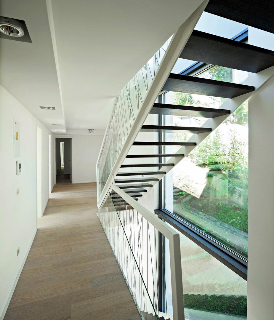 Uz ordinaciju u suterenu, kuća se prostire na još tri kata: u prizemlju su boravak, blagovaonica i kuhinja sa spremištem koje je povezuje s natkrivenom terasom, na prvom katu su roditeljska te dvije dječje sobe, a zadnja je etaža predviđena kao studio s prohodnom terasom s koje se pruža pogled na grad i katedralu.
